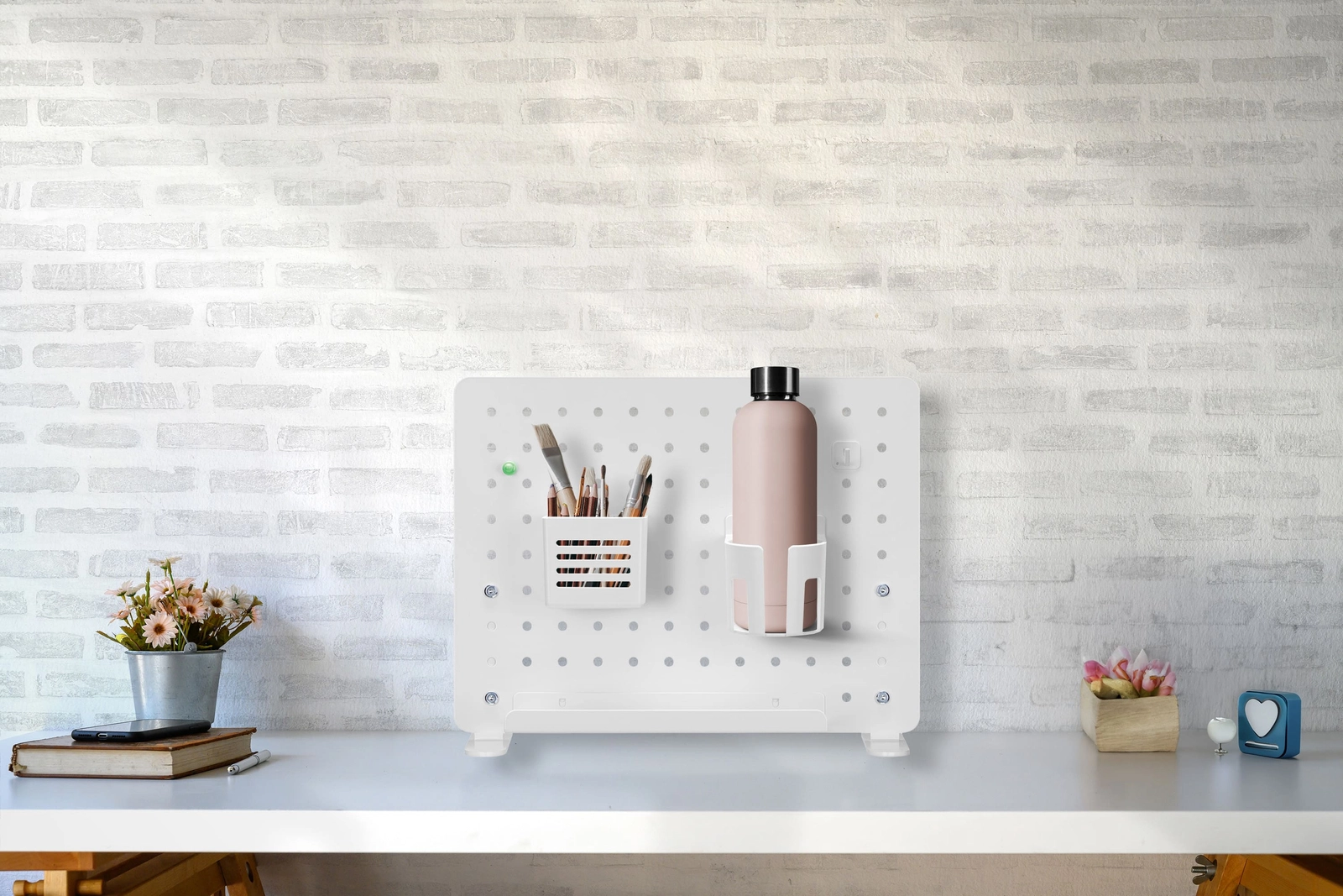 Das LochbrettSPB-152W ist aus einer Kombination von Stahl und hochwertigem Kunststoff gefertigt. Dadurch erhalten Sie eine hervorragende Produktstabilität und eine maximale Belastbarkeit von bis zu 5 kg. So können Sie die wichtigsten Gegenstände, wie z.B. Kopfhörer, bedenkenlos an die Wand hängen. Sie können den Stifthalter auch bedenkenlos mit Ihren wichtigsten Utensilien befüllen. Auf diese Weise werden Sie unnötige Gegenstände von Ihrer Tischplatte los. So können Sie den Raum um sich herum besser organisieren. Darüber hinaus ist die Wand pulverbeschichtet, was die Korrosionsgefahr deutlich verringert. Dadurch wird die Lebensdauer des Produkts erheblich verlängert.