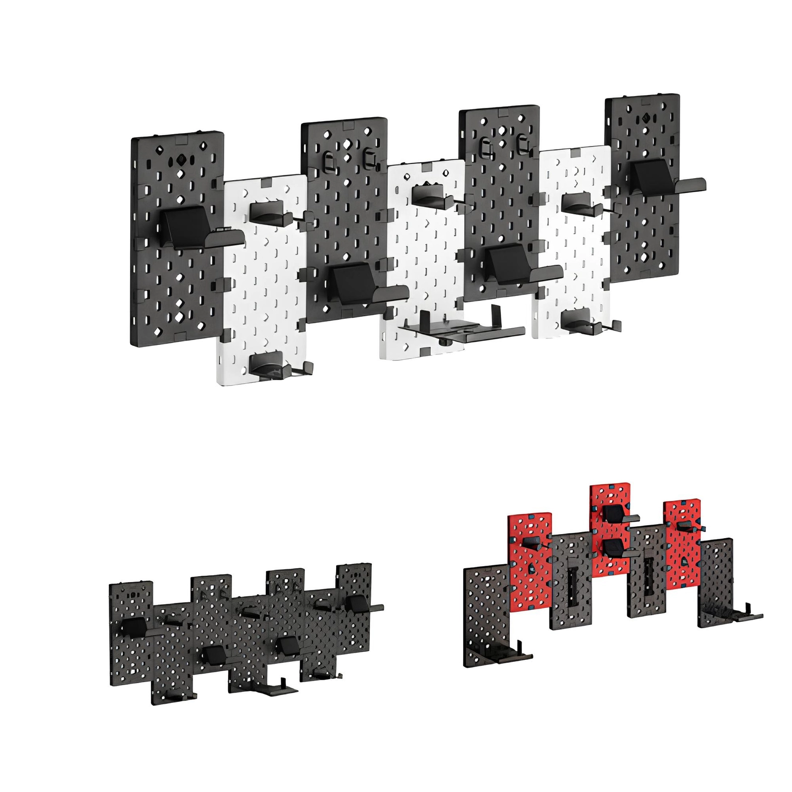 Wenn Sie kein Gamer sind und sich fragen, ob eine solche Lochwand etwas für Sie ist, ist die Antwort ein klares Ja! Dank der Vielzahl und Vielseitigkeit der mitgelieferten Halterungen können Sie problemlos andere Gegenstände als Spielzubehör unterbringen. Schlüssel, Bücher, Regenschirm und viele andere Gegenstände finden einen neuen Platz. Außerdem können Sie das Board dank seines modularen Aufbaus und der 3 Farbvarianten an Ihren Raum anpassen, egal ob es sich um das Wohnzimmer, die Küche oder die Werkstatt handelt.