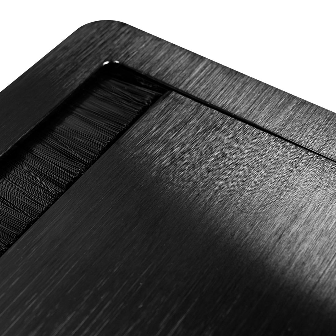 Tischdurchführung beidseitig offen 15x15 cm Aluminium SPS-G03B (schwarz) mit Bürste