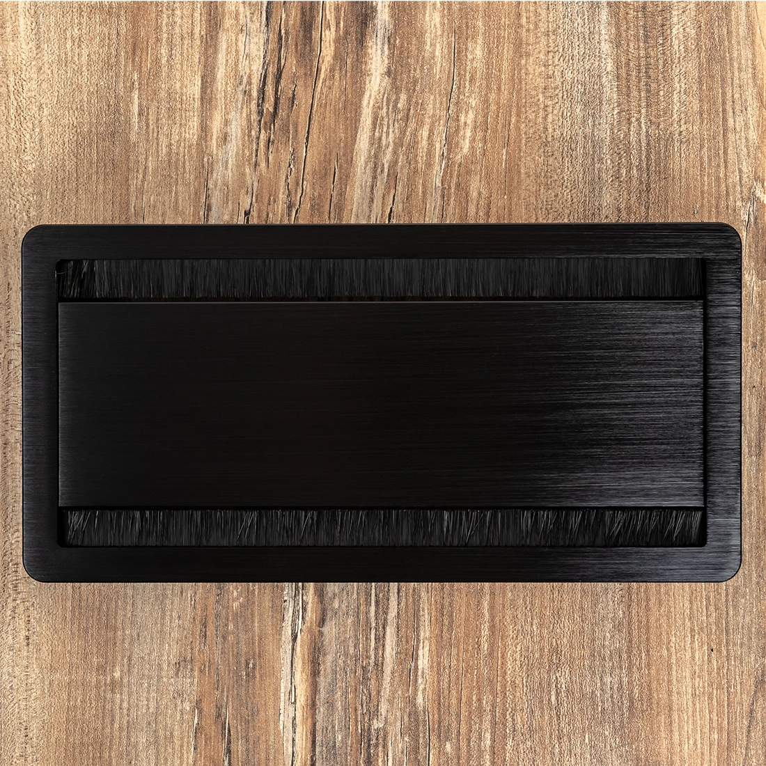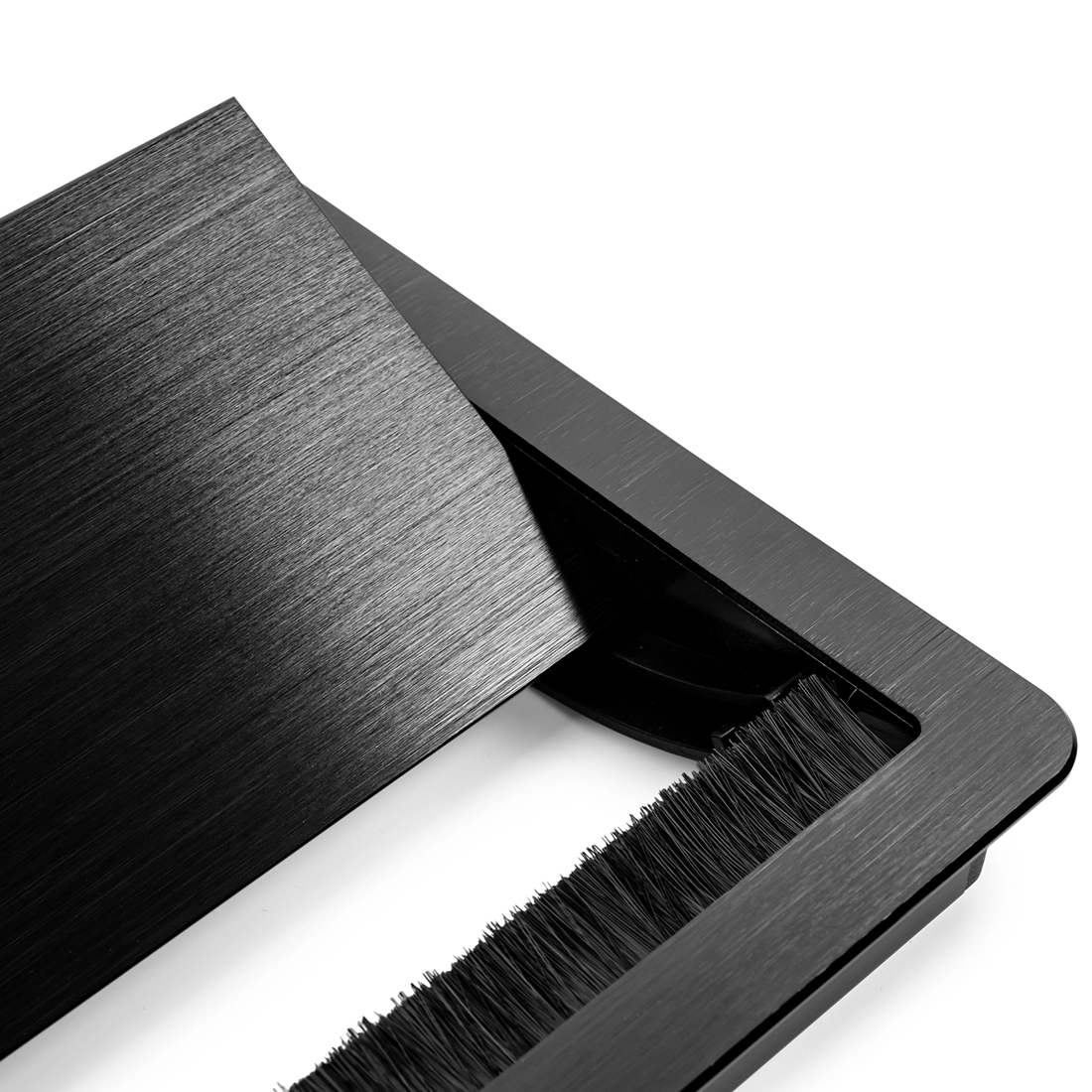 Tischdurchführung beidseitig offen 30x15 cm Aluminium SPS-G04B (schwarz) mit Bürste