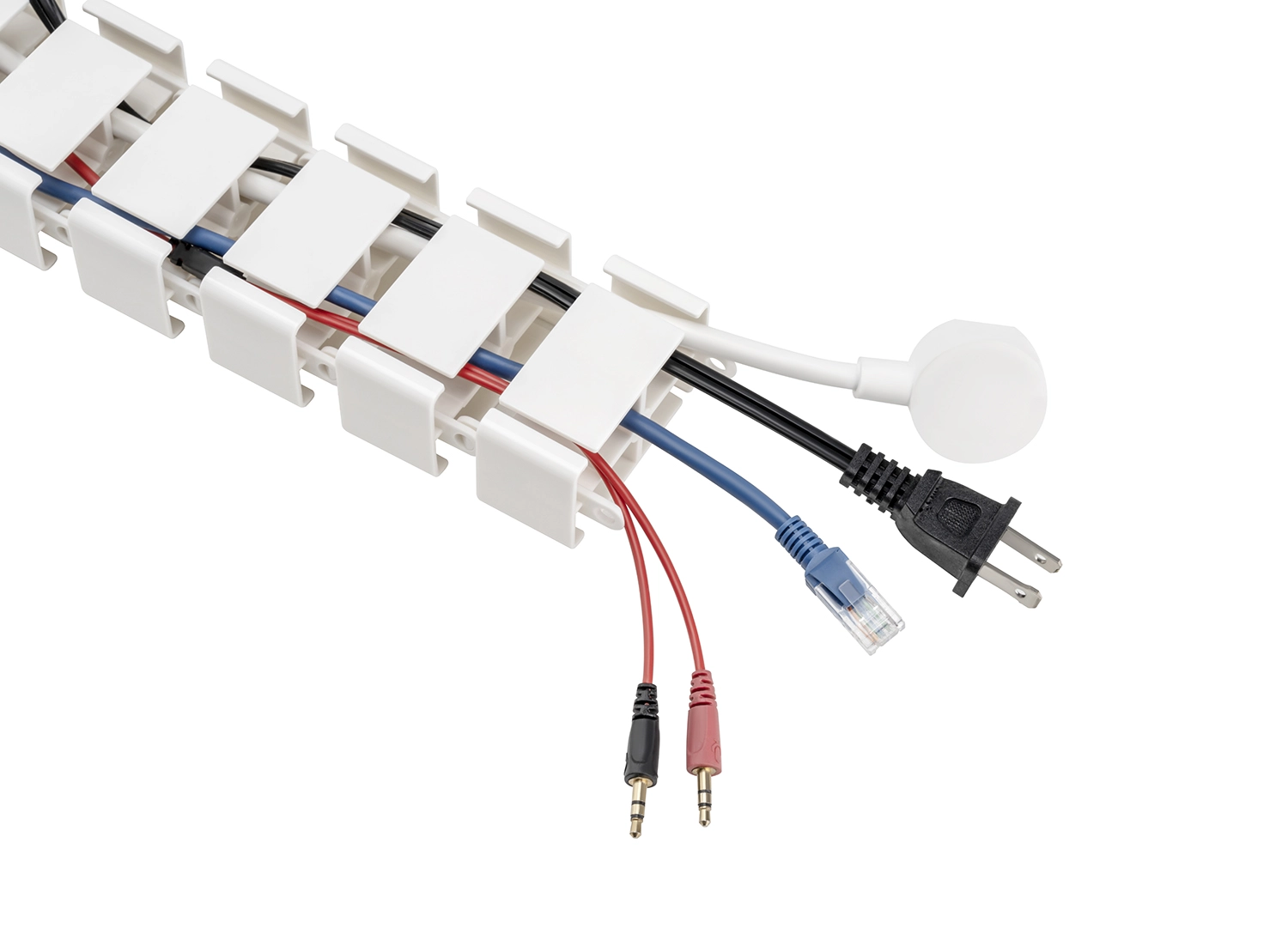 Ideal Lösung zum Abdecken von Kabeln in Büros. Durch ihr einzigartiges und modernen Design fügt sich die Kabelführung perfekt in jeden jeden Einrichtungsstil. Der Kabelorganisator ist für die Organisation von von Kabeln und deren Schutz an Haushalts-/Bürogeräten, Haus-/Büro-, Computer- und Hi-Fi-Geräte zu Hause, im Büro, in der Fabrik, in der Werkstatt, im Konferenzraum - wo immer Sie ein Kabelproblem lösen wollen. wo immer Sie ein Kabelproblem lösen wollen. Der Kabelstrang wurde Kunststoff gefertigt, was die Konstruktion robust macht. robust macht.