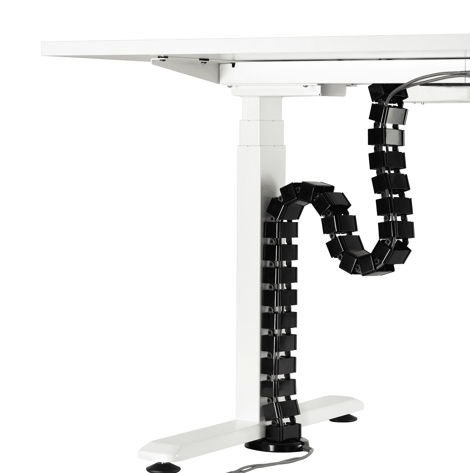 Die Kabelorganisation SPK-180 ist biegbar. Er passt sich an verschiedene Schreibtischhöhen an. Auch an Schreibtische mit Höhenverstellung. Sie müssen ihn nur mit Schrauben am Schreibtisch befestigen. Der Organizer passt sich von selbst der Höhe an, indem er sich biegt oder streckt. Er ist daher ideal für die Verwendung mit elektrischen Schreibtischen.