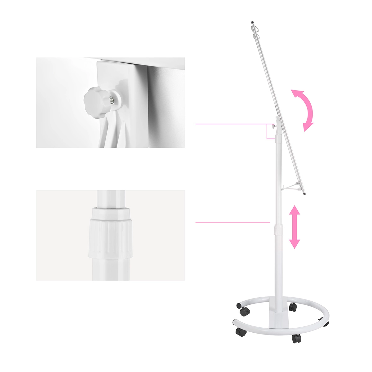 Das magnetische Whiteboard SPB-210 von Spacetronik hat nicht nur den Vorteil, dass es wenig Platz in Ihrer Wohnung oder Ihrem Büro einnimmt, sondern auch, dass es dank der 5 Rollen in seinem Sockel sehr mobil ist. In Verbindung mit der geringeren Größe als bei durchschnittlichen Wandtafeln können Sie die Tafel leicht von einem Ort zum anderen bewegen. So können Sie mit Ihren wichtigen Informationen problemlos mehrere Räume im Büro aufsuchen. Die Rollen wiederum sind mit einer Feststellfunktion ausgestattet, um Ihnen das Schreiben so bequem wie möglich zu machen. So wird verhindert, dass sich das Whiteboard bewegt, während Sie Notizen darauf anbringen