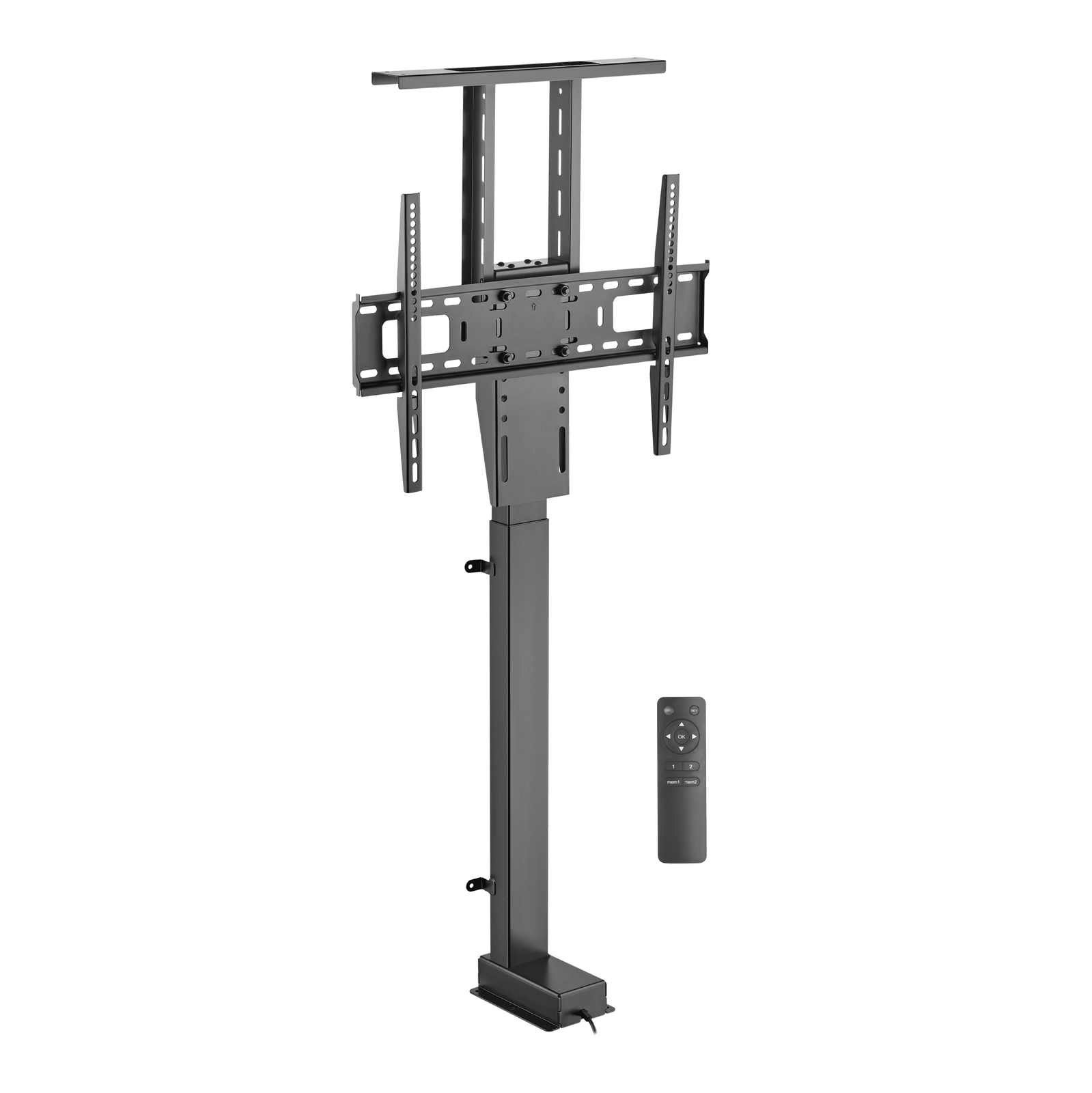 Die Spacetronik SPE-T13S TV-Halterung. Sie ist aus einer Kombination von Stahl, Aluminium und hochwertigem Kunststoff gefertigt. Dadurch können Sie Fernseher mit einem Gewicht von bis zu 60 Kilogramm daran aufhängen. Die elektrische Halterung ist mit einem leistungsstarken Motor ausgestattet. Er sorgt für einen stabilen und leisen Betrieb unter 50 dB. Die Halterung ist pulverbeschichtet, was sie weniger anfällig für Korrosion macht.