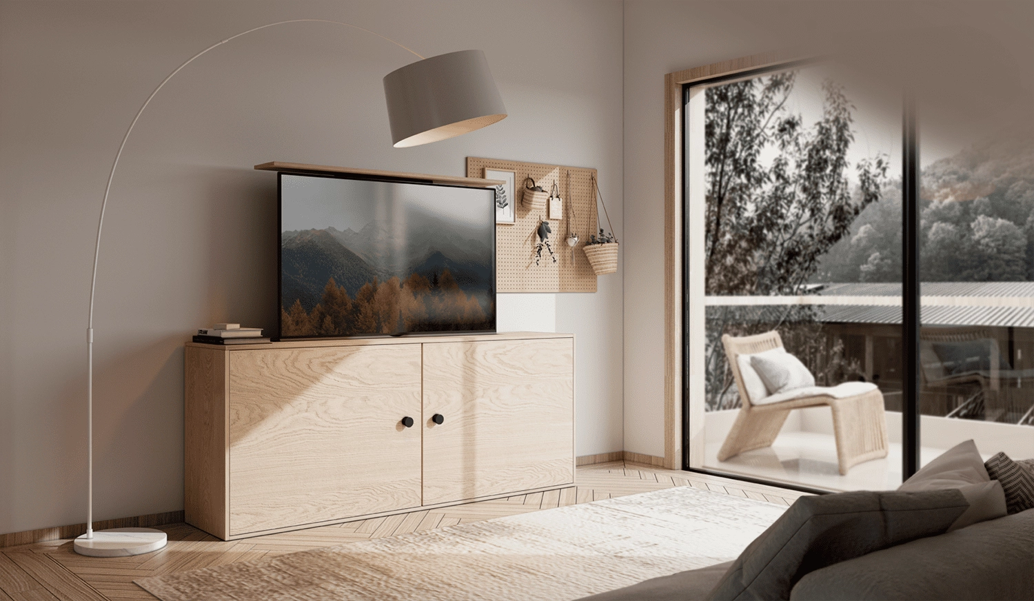 Der Fernseher ist ein fester Bestandteil eines jeden Wohnzimmers. Abends mit der Familie einen Film anzuschauen, nachdem man den ganzen Tag auf der Arbeit verbracht hat, ist ein Vergnügen, das sich jeder verdient hat. Um dies zu ermöglichen, muss man jedoch erst einmal Platz für den Fernseher schaffen. Die TV-Halterung SPE-T13S von Spacetronik ist eine innovative Lösung, mit der Sie Ihren Fernseher in einem Schrank unterbringen können. Ziehen Sie ihn mit der Fernbedienung oder Ihrer Handy-App nur dann heraus, wenn Sie Lust dazu haben.