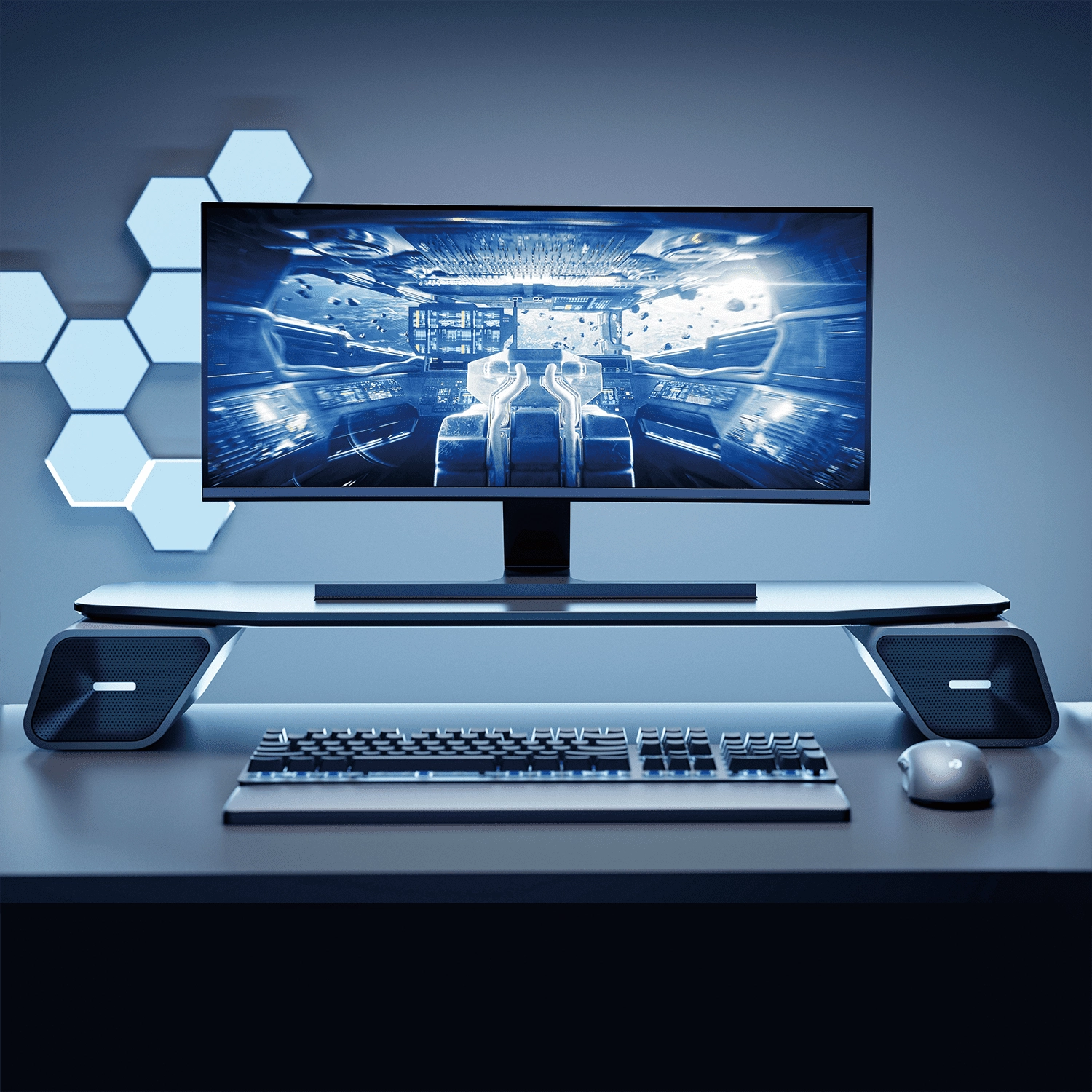 Ein geordneter Arbeitsplatz hat einen erheblichen Einfluss auf die Qualität unserer Arbeit. Er erhöht nicht nur die Konzentrationsfähigkeit, sondern verringert auch das Unfallrisiko. Das Monitor-Lautsprecherstativ Spacetronik SPP-142B kann Ihnen dabei helfen. Dank der intelligenten Kombination von Monitorablage und Lautsprechern gewinnen Sie viel Freiraum auf Ihrem Schreibtisch.