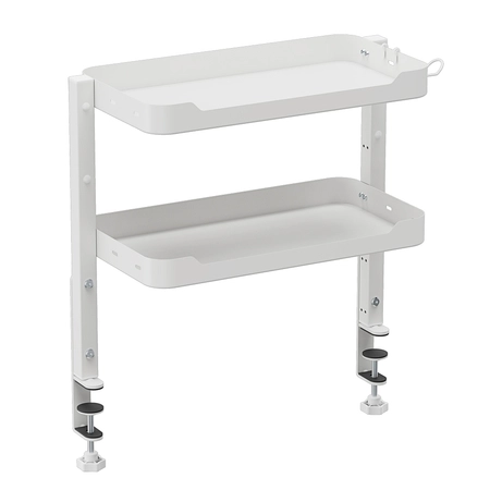 Dzięki solidnemu zaciskowemu systemowi montażu, nadstawkę można pewnie i stabilnie przymocować do blatu biurka. Pasuje do blatów o grubości od 12 do 55 mm, co sprawia, że jest kompatybilna z większością biurek i stołów. To rozwiązanie eliminuje problem przesuwania się półki, gwarantując pewność, że sprzęt i akcesoria pozostaną na swoim miejscu.
