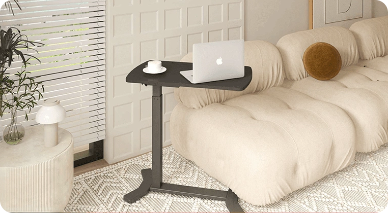 Buddy-06 jest najbardziej kompaktowy z tych trzech modeli. Idealny do niewielkich przestrzeni. Owalny blat oraz minimalistyczny design czynią go świetnym wyborem do biura, sypialni lub małego mieszkania. Powierzchnia blatu modelu Buddy-07 jest nieco większa, co czyni go bardziej uniwersalnym wyborem. Można wykorzystać go zarówno do pracy z laptopem, jak i jako stolik pomocniczy podczas posiłków czy innych czynności. Kształt blatu zapewnia więcej miejsca na akcesoria, co jest szczególnie przydatne dla osób potrzebujących dodatkowej przestrzeni roboczej. Buddy-08 to najbardziej wszechstronny model. Charakteryzuje się bardziej rozbudowanym blatem, co zapewnia maksymalną stabilność. Jest idealnym rozwiązaniem dla osób, które intensywnie korzystają ze stolika i cenią sobie wygodę oraz trwałość.