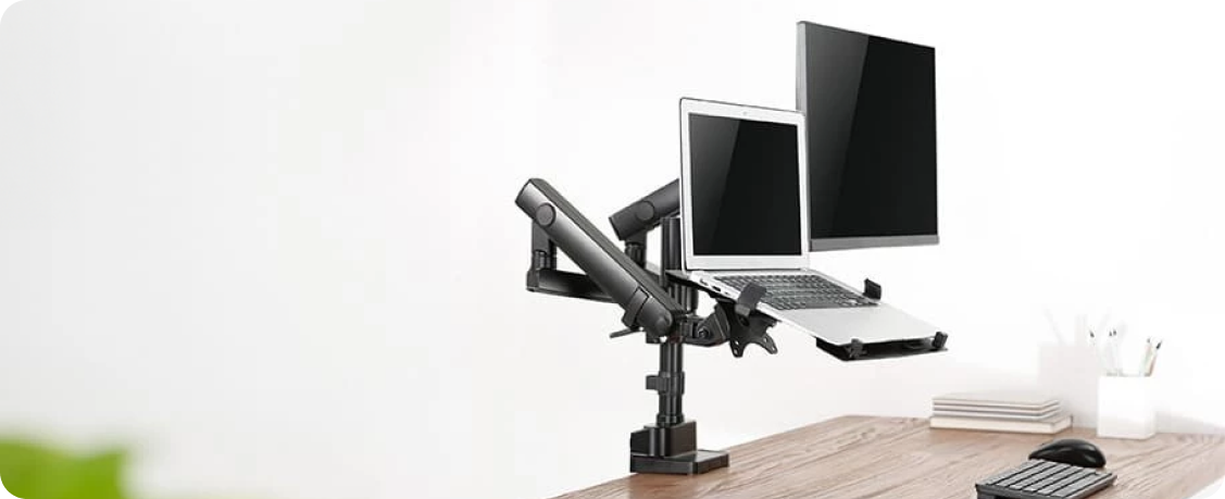 Nasze uchwyty z długim ramionami potrafią precyzyjnie dostosować się do Twoich potrzeb, szczególnie wtedy, kiedy nie masz wystarczająco miejsca na standardowy stelaż. Wygoda, funkcjonalność i porządek na biurku – to tylko niektóre z korzyści, jakie zyskasz inwestując w sprzęt od Spacetronik, i to niezależnie od tego, czy pracujesz na jednym ekranie, dwóch monitorach czy laptopie z dodatkowym ekranem.