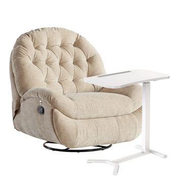 Zestaw wypoczynkowy fotel elektryczny Spacetronik Flax 04M beżowy + stolik regulowany
