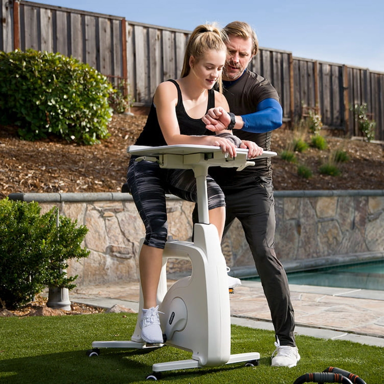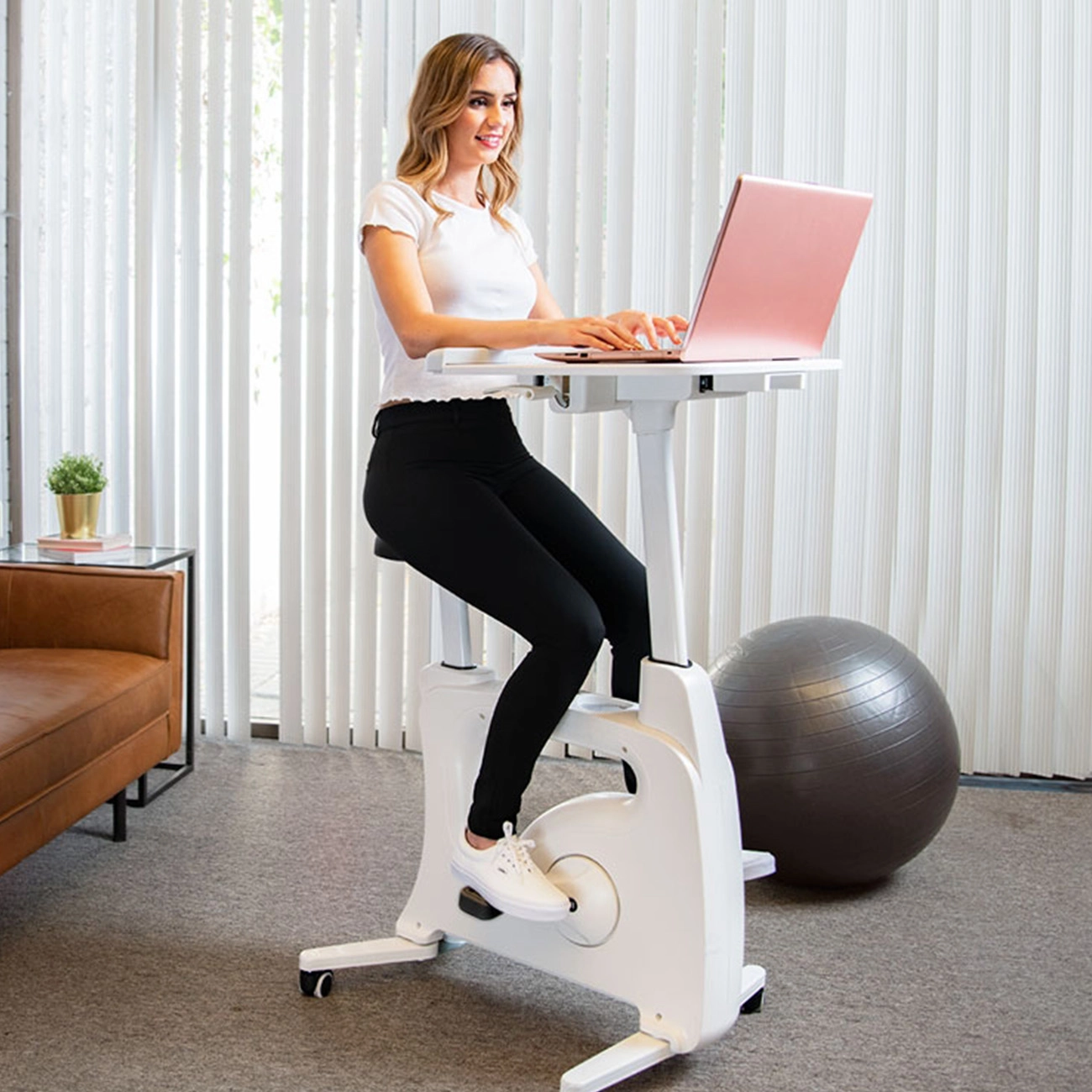 Ten rower biurkowy wspiera produktywność. Dbaj o zdrowie, robiąc trening i spalając kalorie podczas pracy siedzącej przed monitorem.