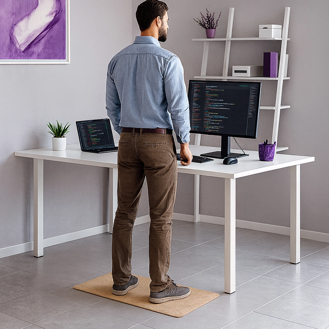 Długie stanie potrafi mocno obciążyć stawy, mięśnie i kręgosłup, powodując narastający dyskomfort w ciągu dnia. Ta mata została zaprojektowana tak, aby realnie odciążyć Twoje ciało poprzez skuteczne pochłanianie nacisku i mikrowstrząsów. Jej struktura pracuje razem z Tobą — ugina się tam, gdzie powinna, a jednocześnie stabilizuje postawę, wspierając naturalne ułożenie nóg. Dzięki temu zyskujesz więcej energii, mniejszą sztywność mięśni i wyraźnie lepsze samopoczucie podczas długiego stania. To rozwiązanie stworzone dla osób, które chcą dbać o komfort i zdrowie każdego dnia. Amortyzacja premium chroniąca stawy sprawia, że Twoje ciało naprawdę ma lżej.