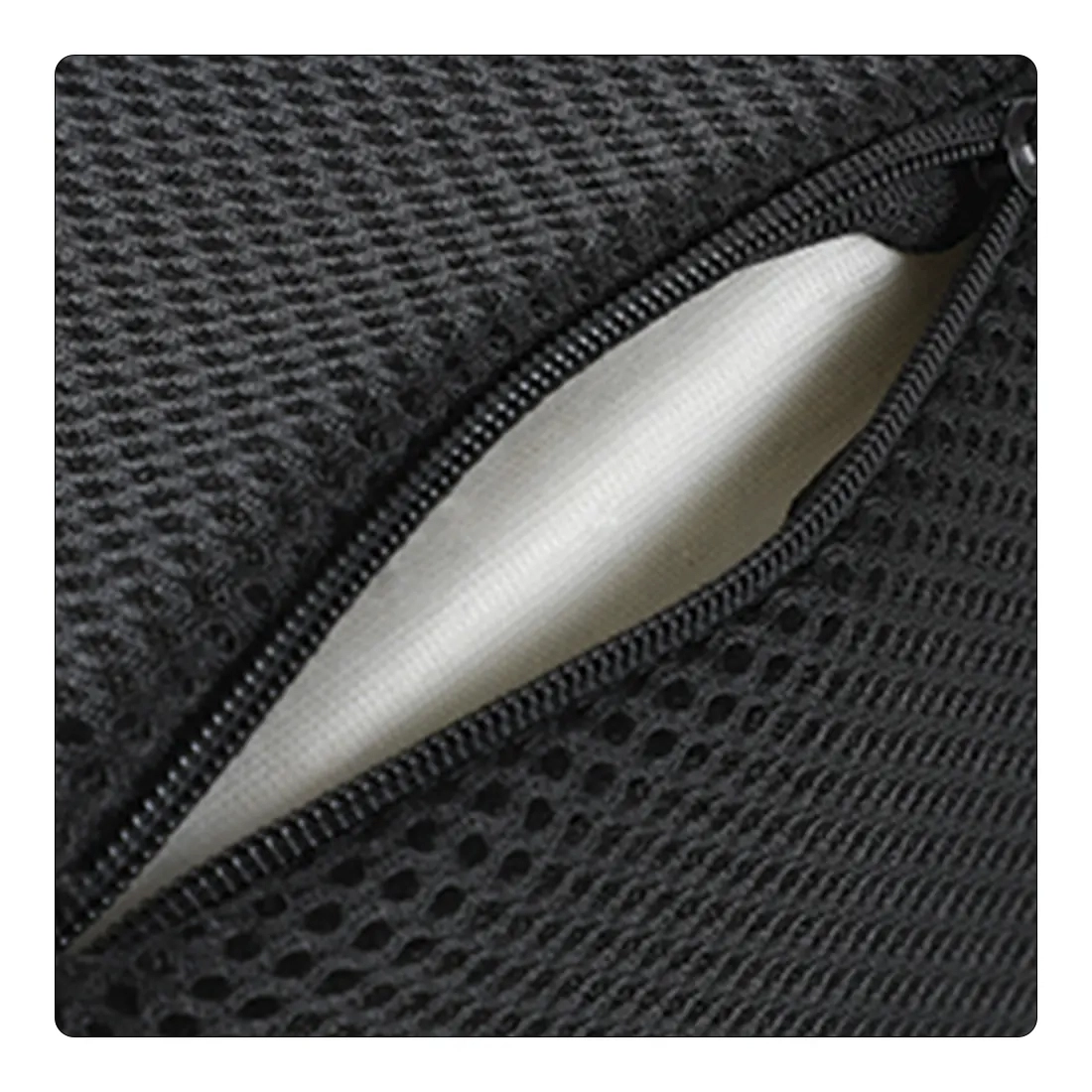Poduszka siedziska jest zabezpieczona pokrowcem z oddychającej siateczkowej osłony, która nie zatrzymuje ciepła i umożliwia przepływ powietrza. Dzięki niej ciało nie poci się i zapewnia wygodę przez cały dzień. Czyszczenie ergonomicznej poduszki jest niezwykle proste - wystarczy odpiąć zamek błyskawiczny, zdjąć pokrowiec i wyprać w 40 stopniach Celsjusza. Na powierzchni poduszki znajduje się żel chłodzący, który pomaga rozproszyć ciepło ciała i zapewnia komfort nawet przy długim użytkowaniu. Miękkie siedzenie sprawia, że używanie poduszki wiąże się z przyjemnością, a nie trudnością utrzymania pozycji siedzącej.