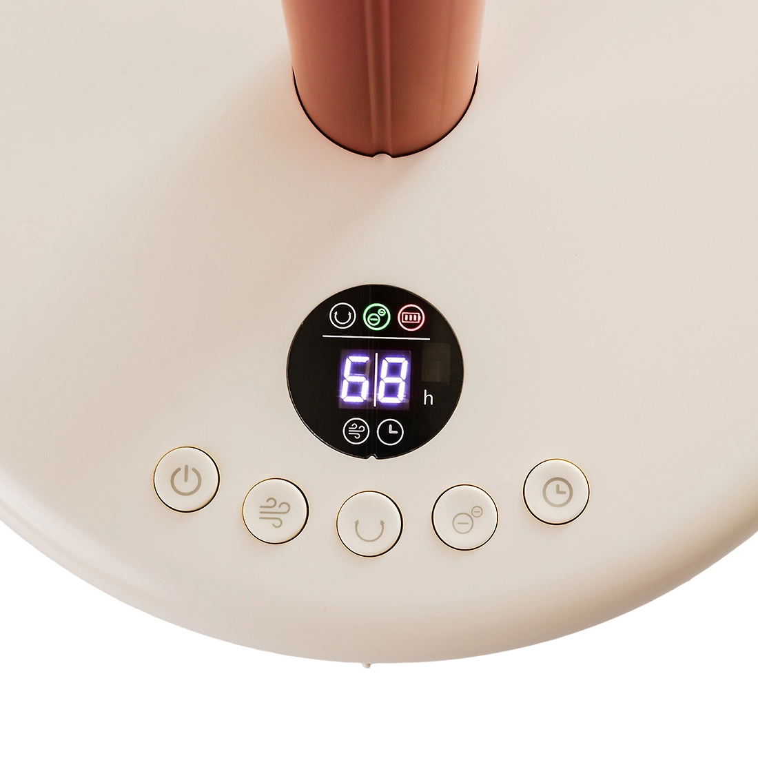 Co, jeżeli chciałbyś zabrać swój wentylator w miejsca, gdzie nie ma dostępu do prądu? Np. na taras lub do samochodu? Możesz bez najmniejszego problemu to zrobić! Wentylator Spacetronik AirPuff 2 został wyposażony w wydajny akumulator o pojemności 3600 mAh. Dzięki niemu możesz spokojnie cieszyć się wieloma godzinami chłodnego i oczyszczonego powietrza. Gdy natomiast wentylator się rozładuje, naładujesz go z powrotem w szybki sposób przy użyciu 24 W.
