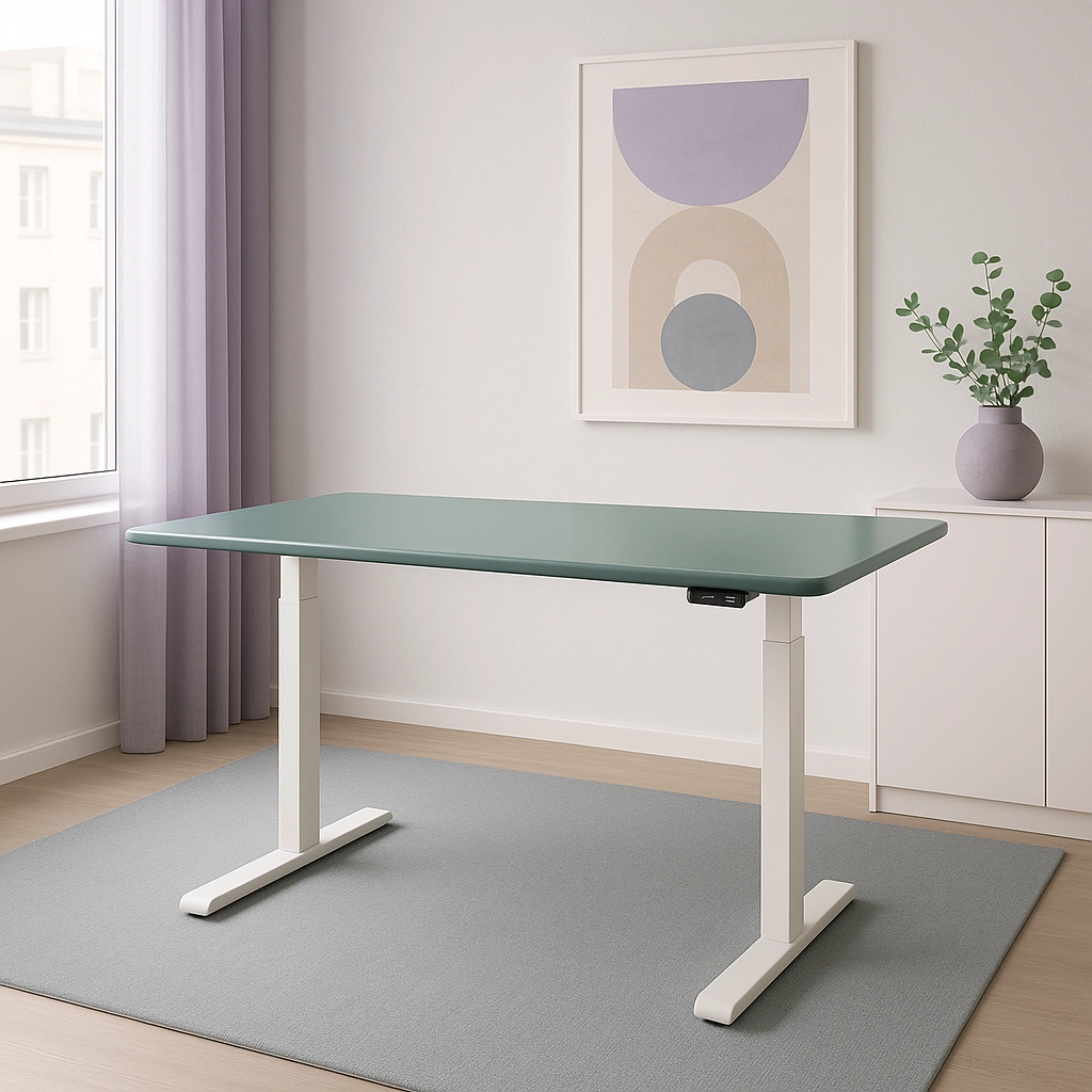 • Solidny blat do stołu lub biurka o wymiarach 120 x 60 cm wykonany z wysokiej jakości płyty MDF lakierowanej proszkowo. Zaokrąglone rogi i boki. Grubość 25 mm. Nadaje się do stelaży z elektryczną regulacją wysokości.