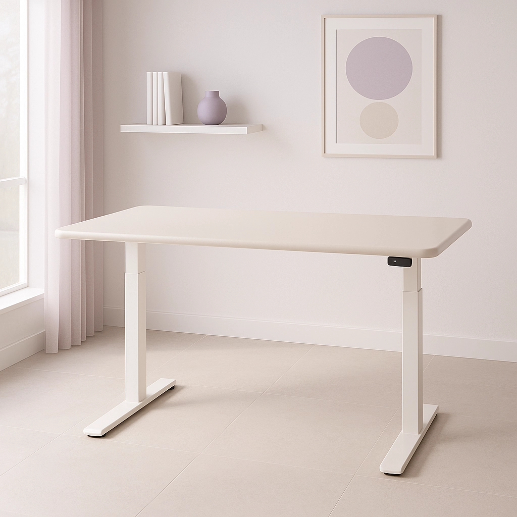 • Solidny blat do stołu lub biurka o wymiarach 120 x 60 cm wykonany z wysokiej jakości płyty MDF lakierowanej proszkowo. Zaokrąglone rogi i boki. Grubość 25 mm. Nadaje się do stelaży z elektryczną regulacją wysokości.