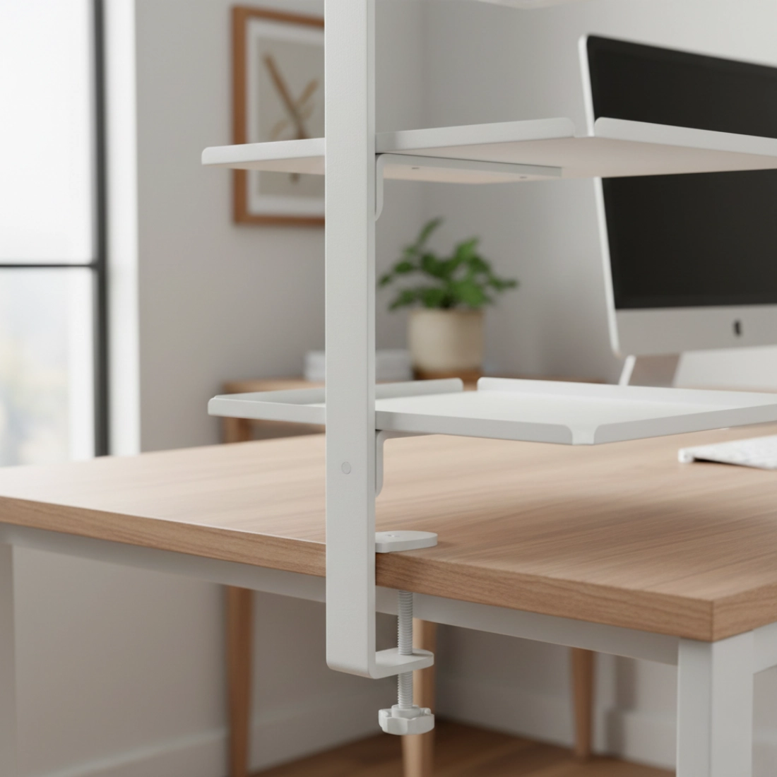Clamp umożliwia szybkie zamocowanie organizera do krawędzi blatu. To wygodne rozwiązanie, gdy nie chcesz ingerować w mebel i zależy Ci na możliwości łatwego demontażu.