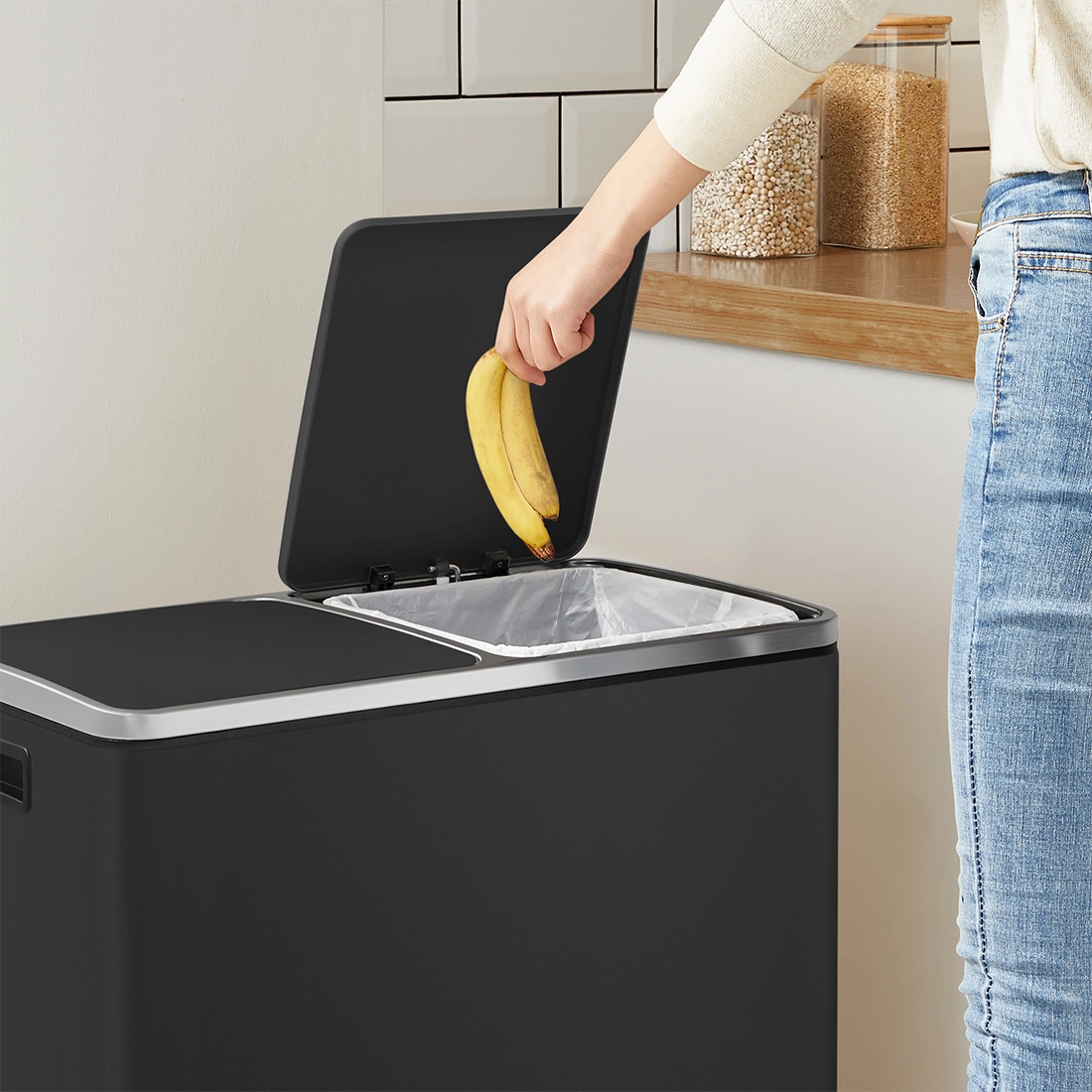 Model Spacetronik SFFT0021_V1 posiada dwie osobne komory, które ułatwiają codzienną segregację śmieci. Dzięki temu użytkownik może wygodnie oddzielać odpady zmieszane od recyklingu, co znacząco poprawia organizację i przyczynia się do dbania o środowisko. Podwójna komora pozwala też oszczędzać czas i miejsce w kuchni.