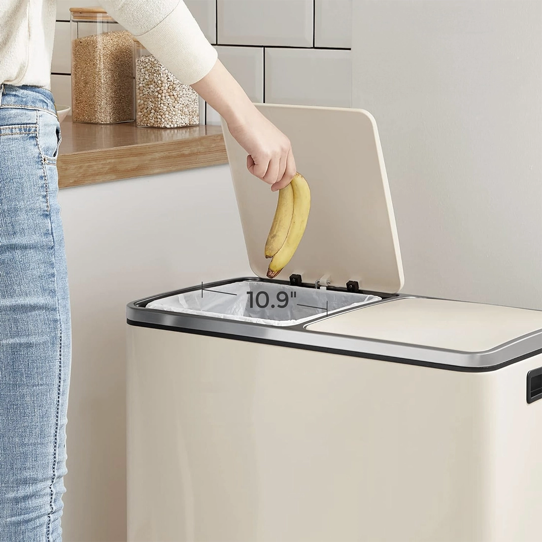 Model Spacetronik SFFT0021_V3 posiada dwie osobne komory, które ułatwiają codzienną segregację śmieci. Dzięki temu użytkownik może wygodnie oddzielać odpady zmieszane od recyklingu, co znacząco poprawia organizację i przyczynia się do dbania o środowisko. Podwójna komora pozwala też oszczędzać czas i miejsce w kuchni.