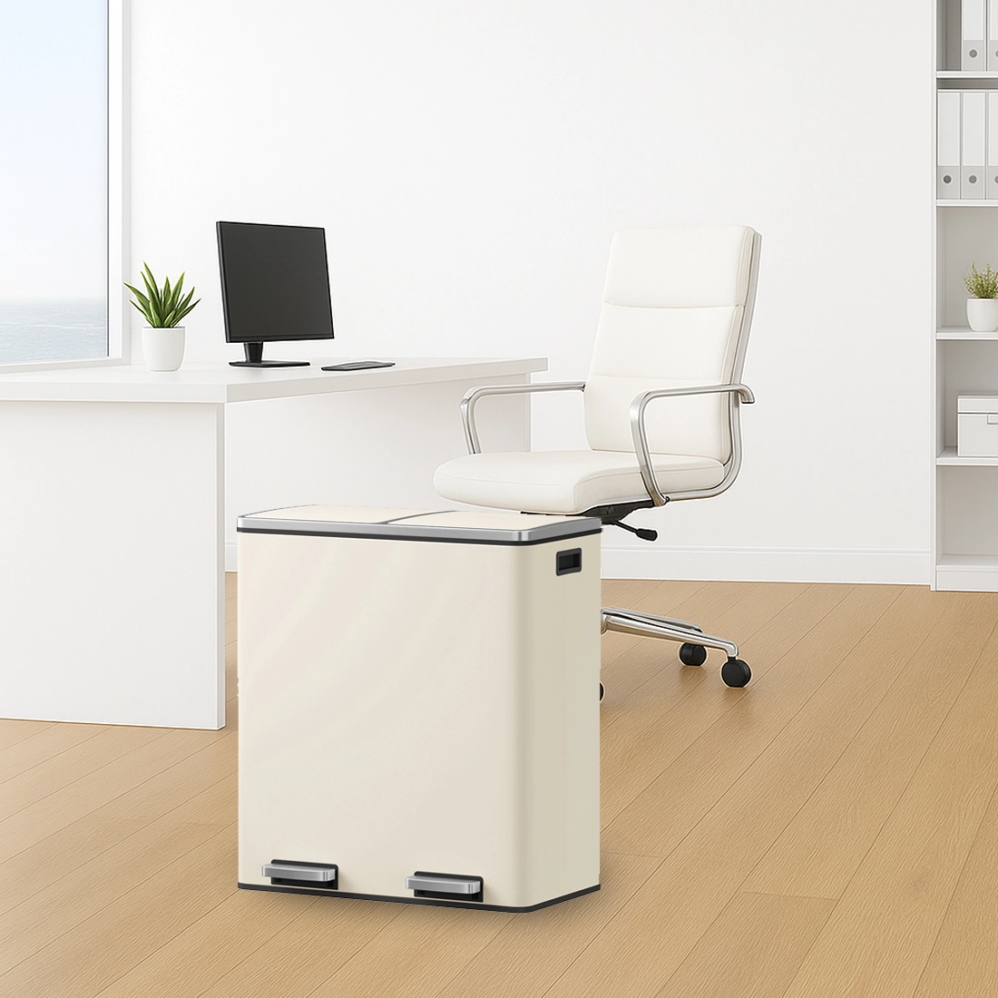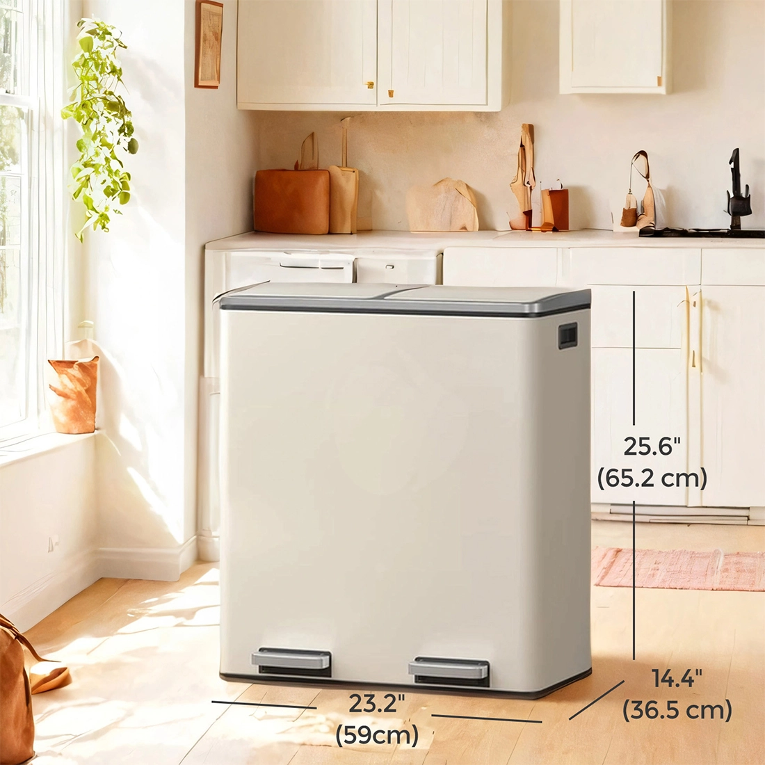 Kosz na śmieci z podwójną komorą Spacetronik SFFT0021_V3 z funkcją cichego domykania kremowy