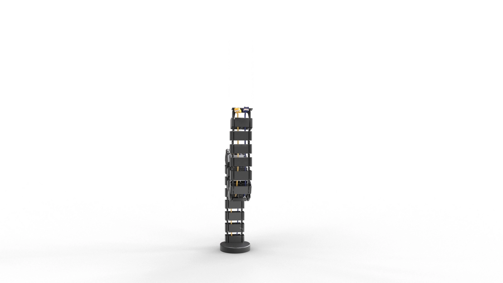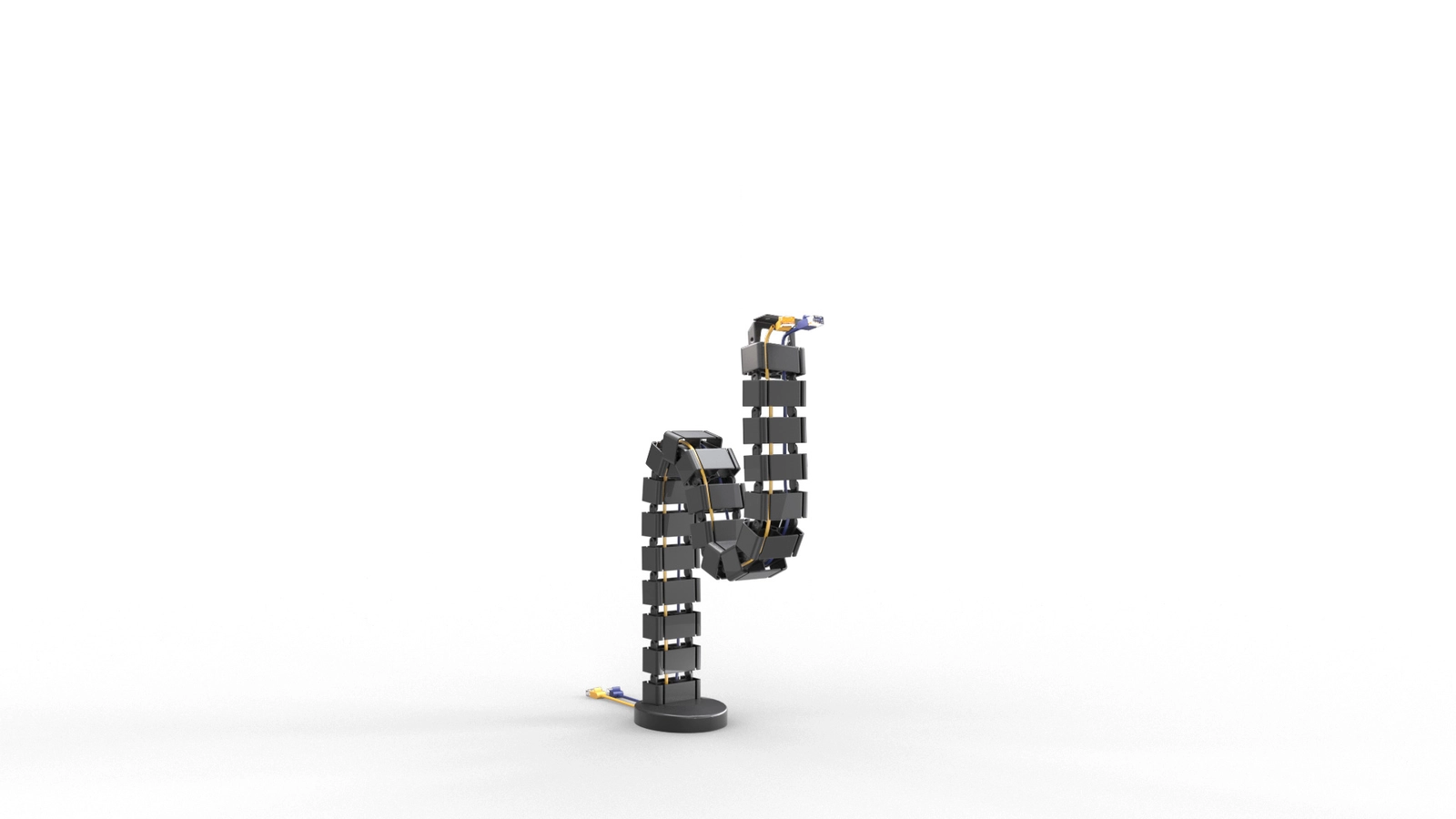Organizer do przewodów Spacetronik SPK-188 składa się 20 modułów. Każdy z nich możesz z łatwością odczepić albo przyczepić. Dzięki temu możesz z łatwością dopasować wysokość organizera do swoich potrzeb. Jeżeli jednak nie chcesz usuwać pojedynczych elementów, nie musisz się tym zajmować. Organizer dzięki swojej szkieletowej budowie może się zginać, dopasuje się do różnej wysokości biurka.