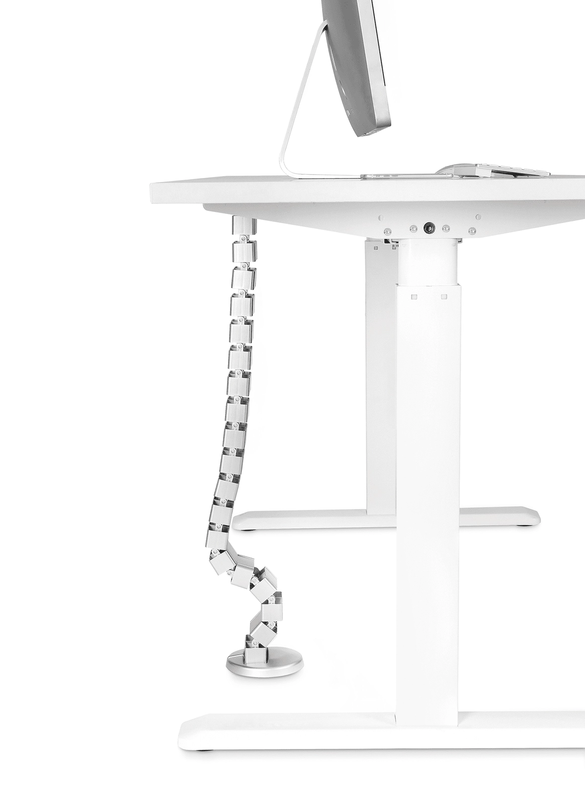 Organizer na kable SPK-188 ma możliwości zginania. Dopasujesz go do różnego rodzaju biurek. Również do biurek z regulacją wysokości. Wystarczy tylko, że przymocujesz go za pomocą śrub do blatu. Organizer sam będzie dostosowywał swoją wysokość razem z nim, zginając się lub prostując. Jest to, więc idealne rozwiązanie do stosowania razem z biurkami elektrycznymi.