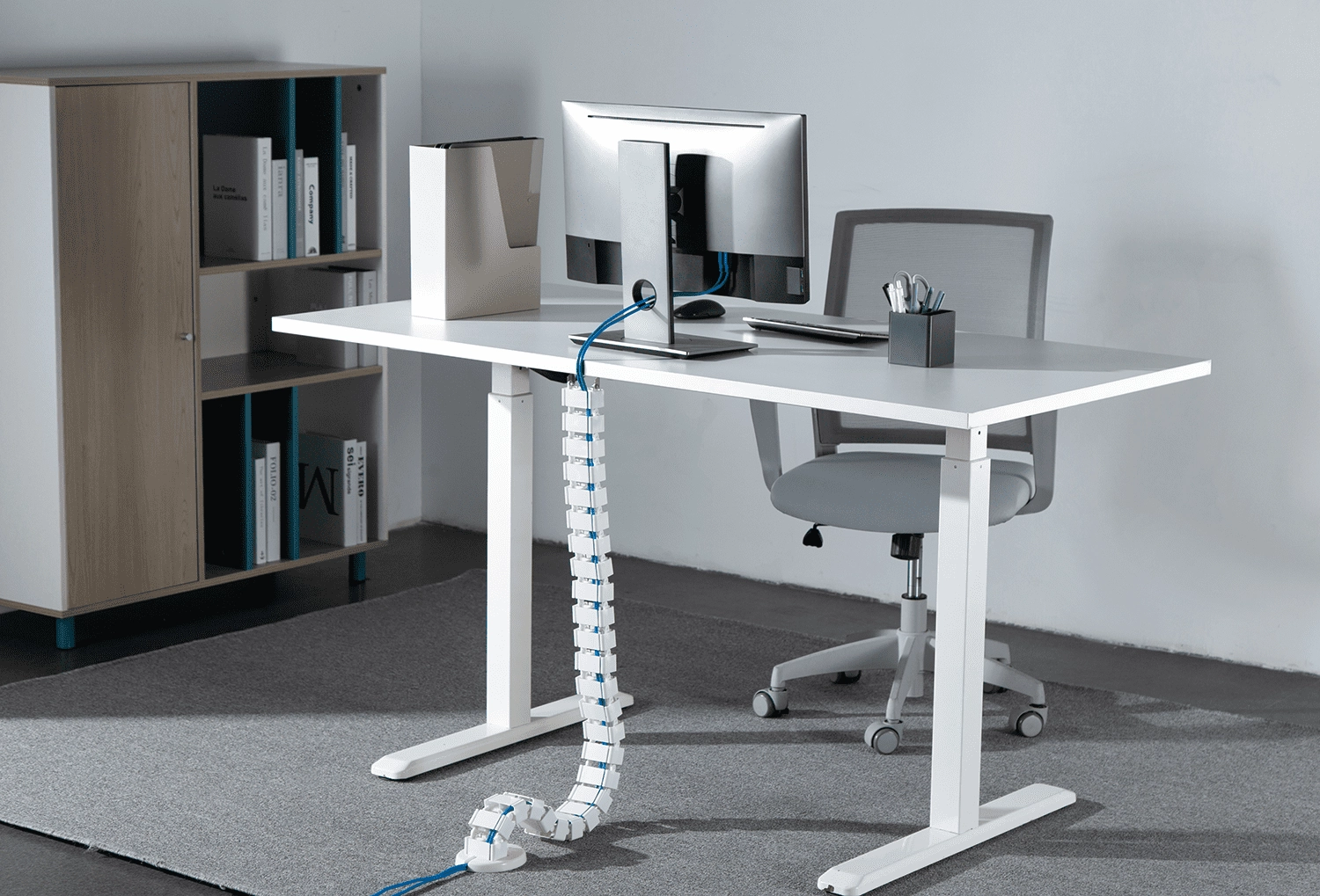 Organizer na kable SPK-188 ma możliwości zginania. Dopasujesz go do różnego rodzaju biurek. Również do biurek z regulacją wysokości. Wystarczy tylko, że przymocujesz go za pomocą śrub do blatu. Organizer sam będzie dostosowywał swoją wysokość razem z nim, zginając się lub prostując. Jest to, więc idealne rozwiązanie do stosowania razem z biurkami elektrycznymi.