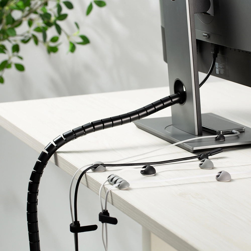 Zestaw opasek i przyklejanych uchwytów kablowych pozwalających na zachowanie porządku wśród kabli wokół biurka i nie tylko. Pakiet składa się z 21 elementów.