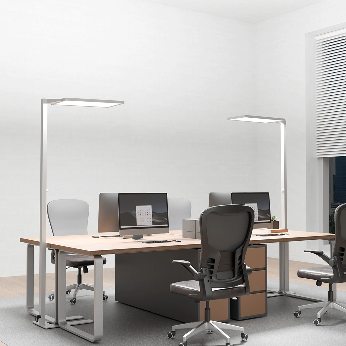 Dzięki stalowej podstawie w kształcie litery U i lekkiej konstrukcji z aluminium, lampę można łatwo przestawić w dowolne miejsce biura. Nie wymaga skomplikowanego montażu - wystarczy ustawić ją tam, gdzie światło jest potrzebne. To praktyczne rozwiązanie dla dynamicznych przestrzeni pracy, gdzie aranżacja często się zmienia.