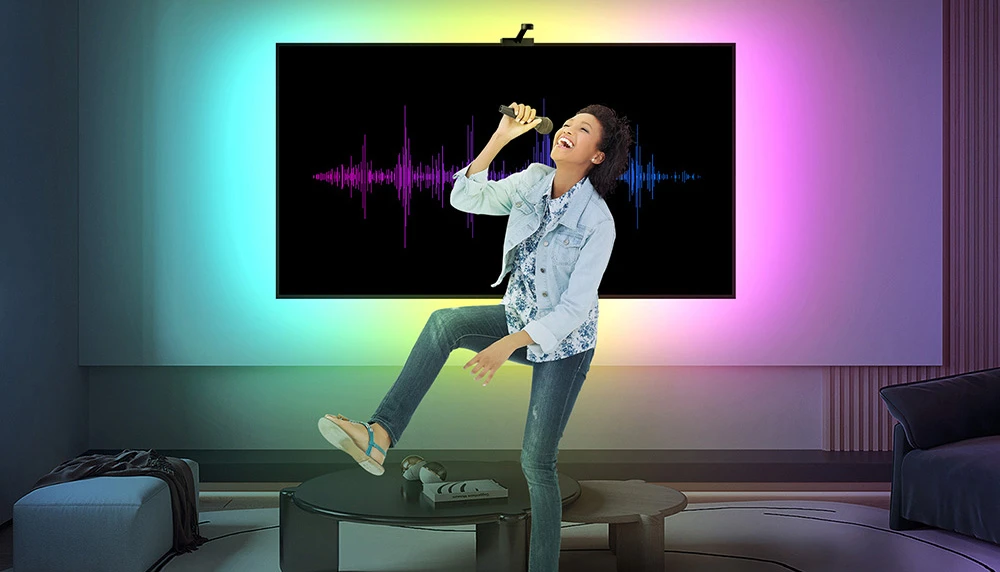 Dzięki elastycznej konstrukcji taśmy LED 3,8 m, łatwo możesz ją dopasować do telewizorów i monitorów. Przyklej, podłącz zasilanie i rozświetl tło za telewizorem. Kompatybilne z urządzeniami o przekątnej 55-65 cali.