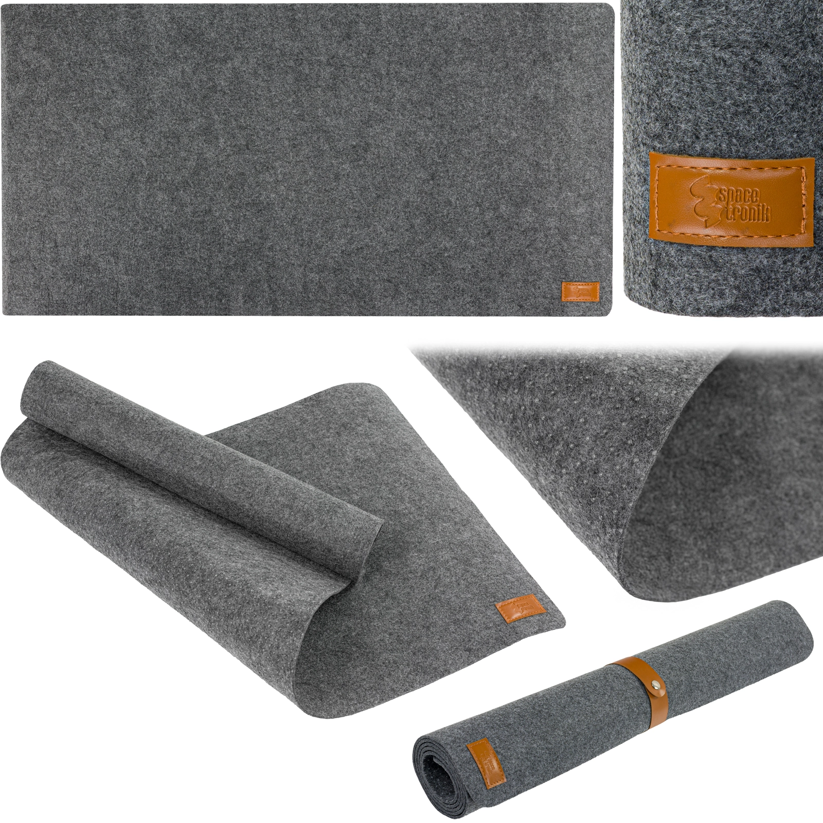 Minimalistyczna estetyka maty została podkreślona skórzaną wszywką z logo Spacetronik, która dodaje jej charakteru. Taki detal sprawia, że produkt idealnie pasuje zarówno do nowoczesnych, jak i klasycznych aranżacji biurkowych. Skórzana metka z logo to elegancki akcent w codziennym użytkowaniu.