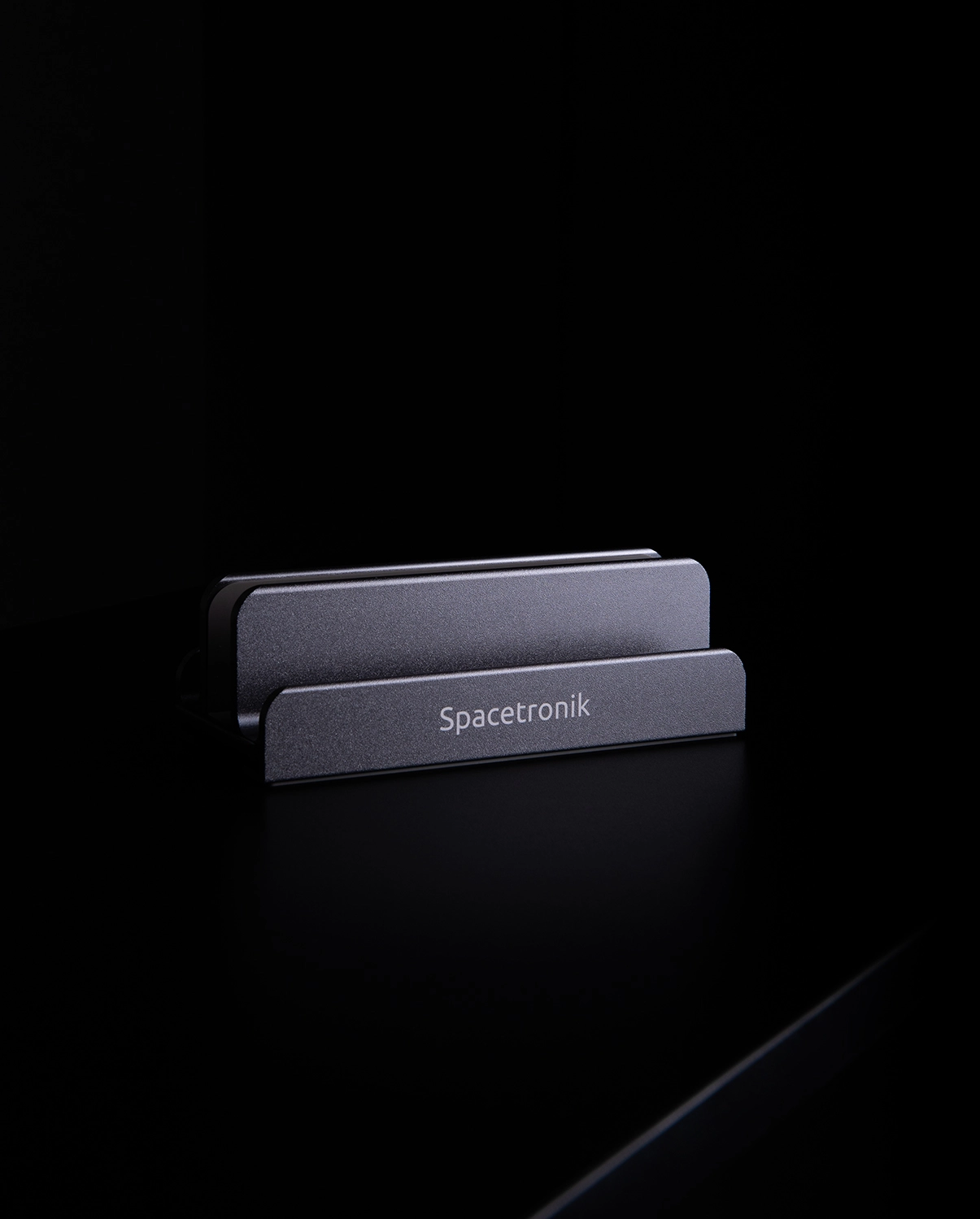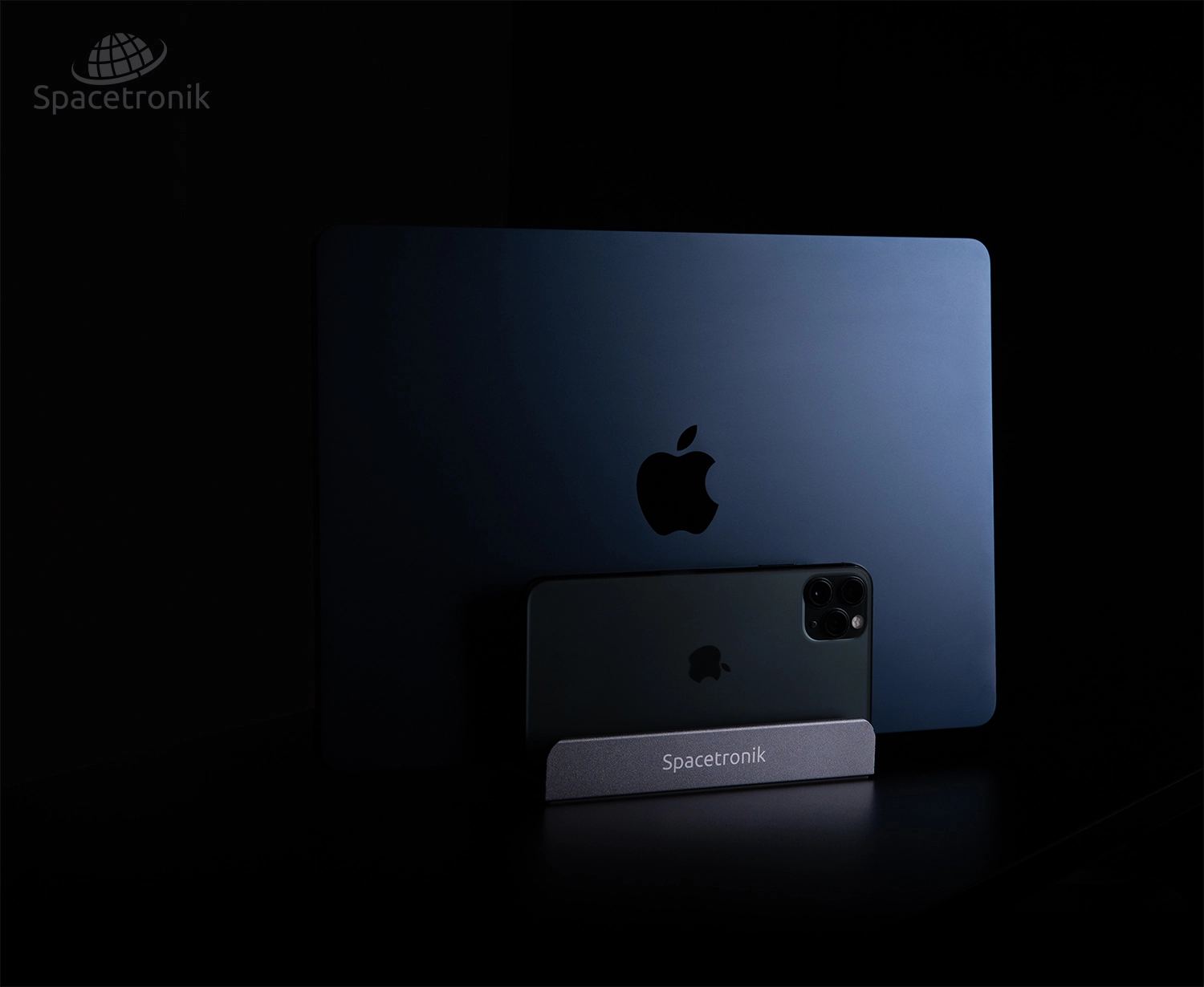 Bez różnicy czy masz grubego laptopa, czy wąskiego Maca, podstawka od Spacetronik posiada regulację szerokości uchwytu od 2 do 4,5 cm. Oprócz tego znajdują się w nim 2 miejsca na telefony komórkowe (każdy model się zmieści)