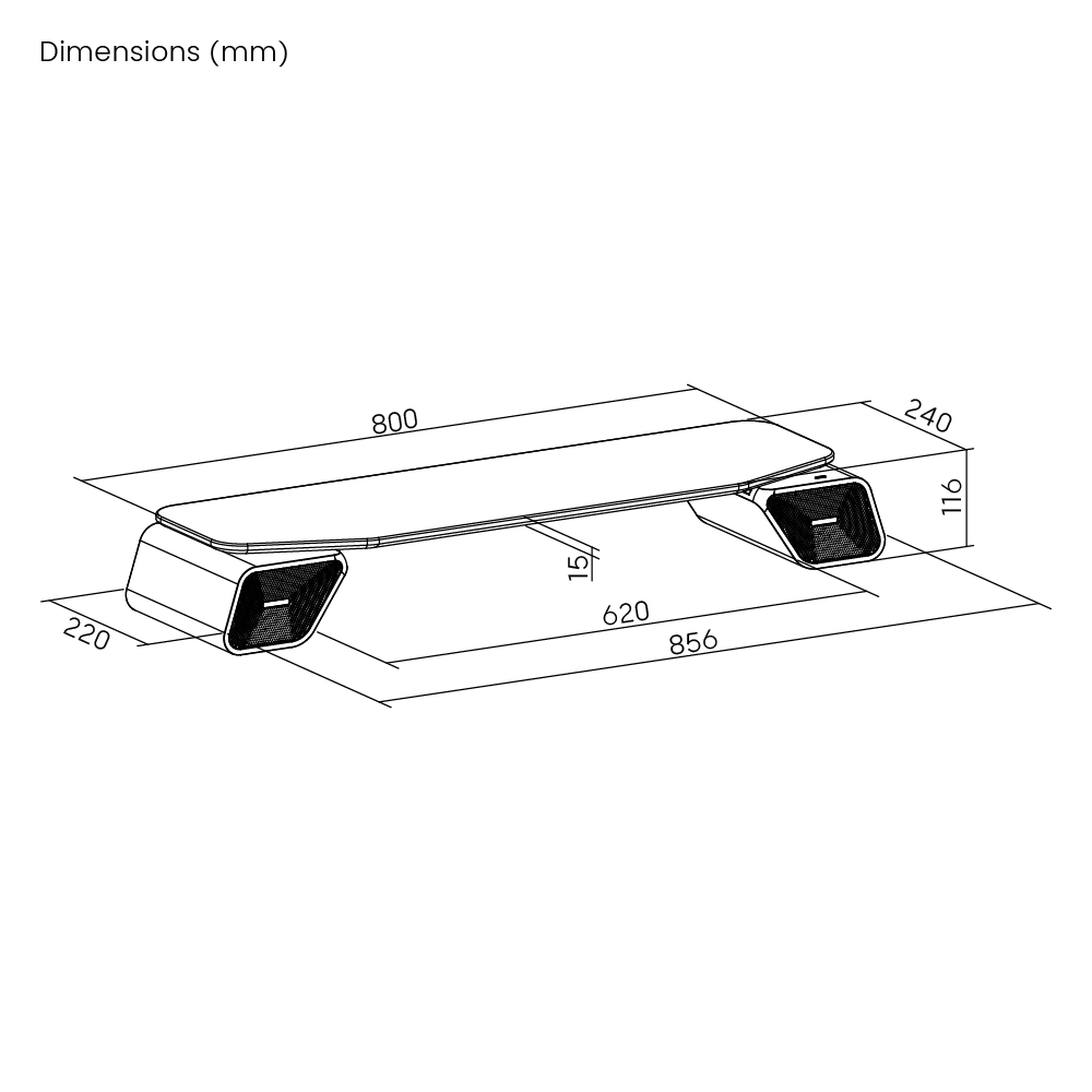 Wymiary: 856×240×116 mm (33,7"×9,4"×4,6")
