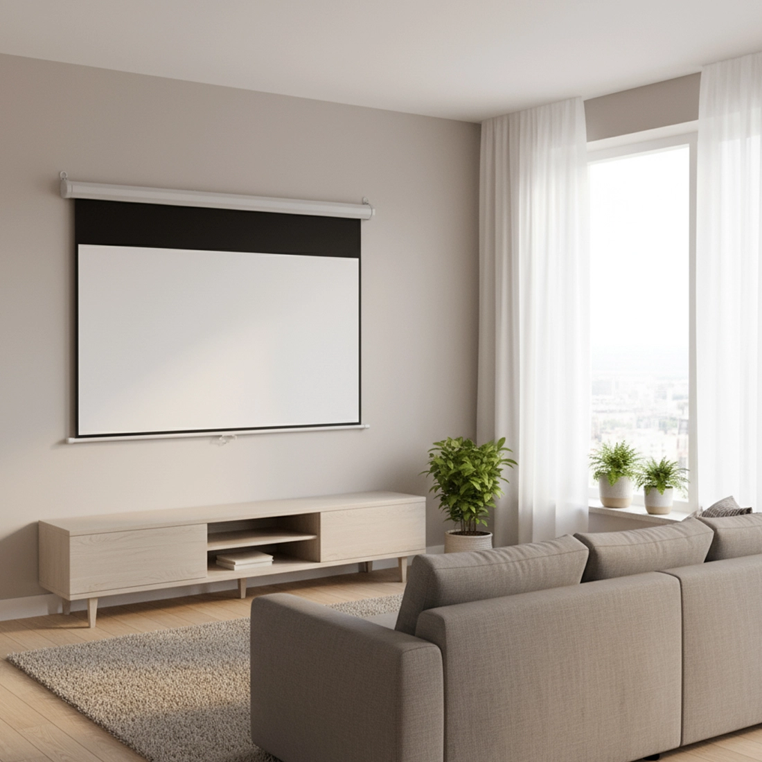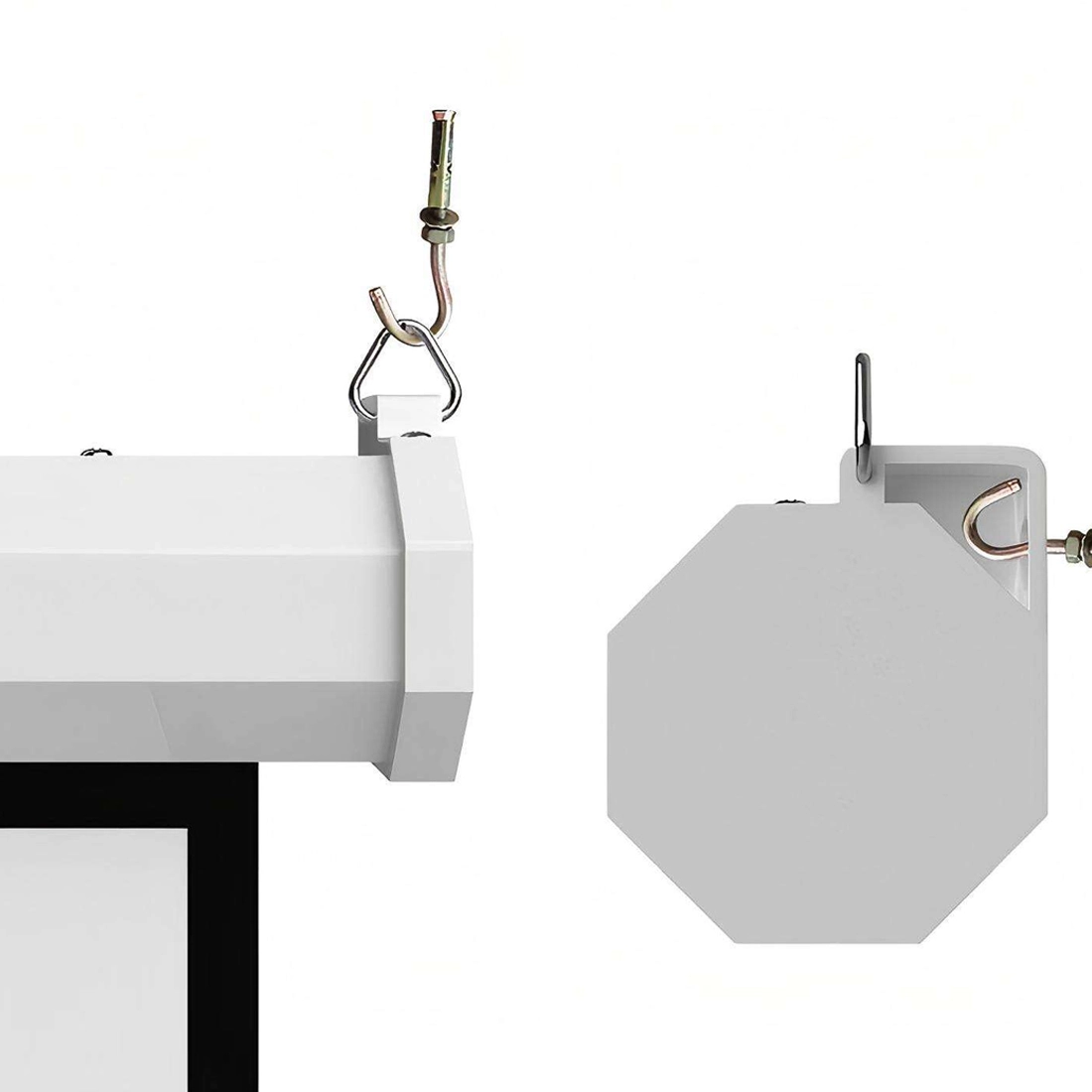- Łatwy montaż: Prosta instalacja na ścianie lub suficie sprawia, że ekran gotowy jest w kilka minut.