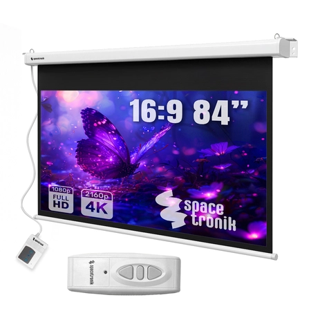 Elektryczny Ekran Projekcyjny Ścienny Premium PVC EASY VIEW 84" 16:9 Cali 4K HD Spacetronik PRS-E02-84-169