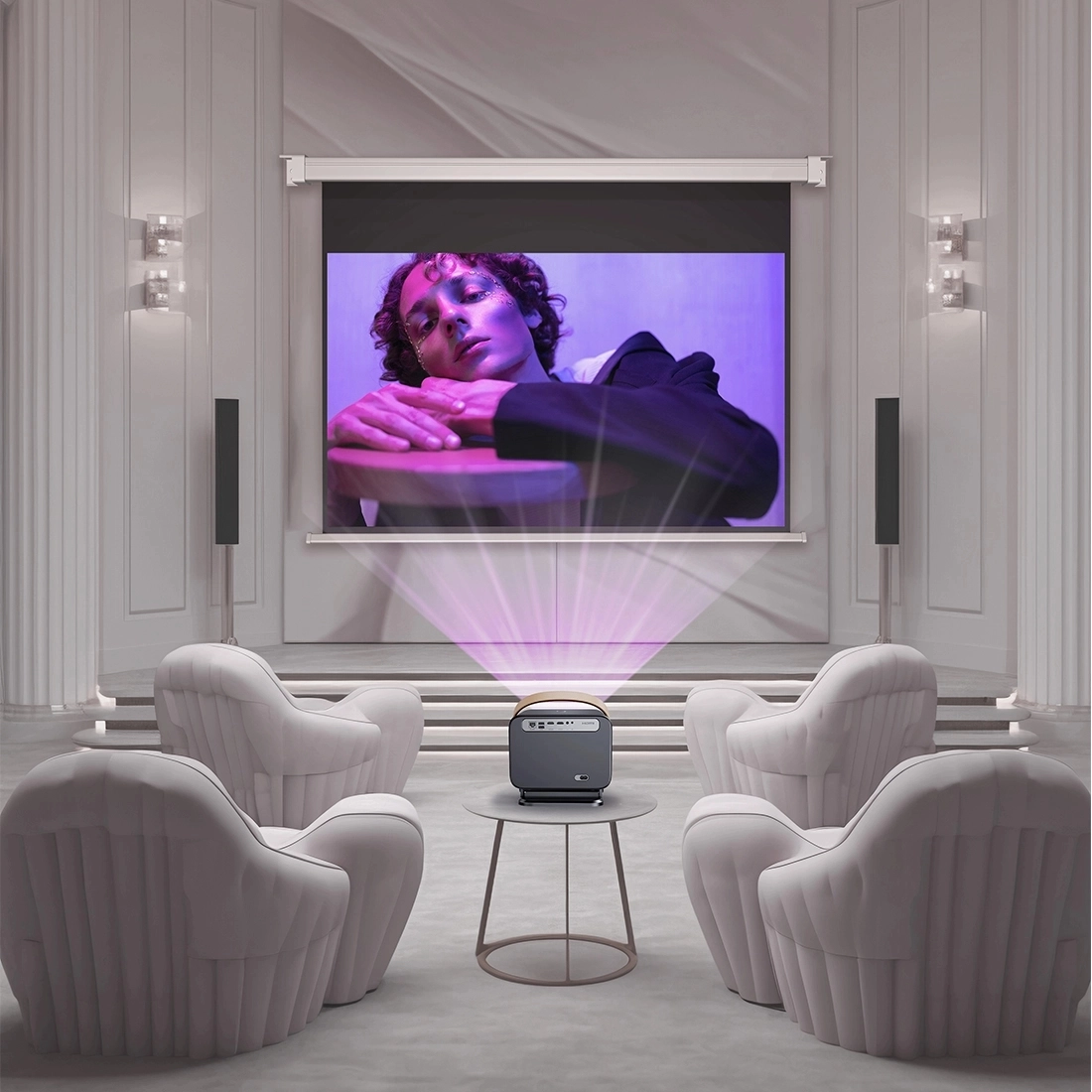 Szeroki kąt widzenia wynoszący aż 165° sprawia, że obraz pozostaje czytelny, jasny i wyraźny, nawet jeśli widzowie nie siedzą bezpośrednio na wprost ekranu. To idealne rozwiązanie do większych pomieszczeń, gdzie domownicy lub uczestnicy prezentacji rozsiadają się w różnych miejscach. Dzięki temu każdy może cieszyć się wysoką jakością projekcji bez kompromisów — niezależnie od tego, pod jakim kątem patrzy na ekran.