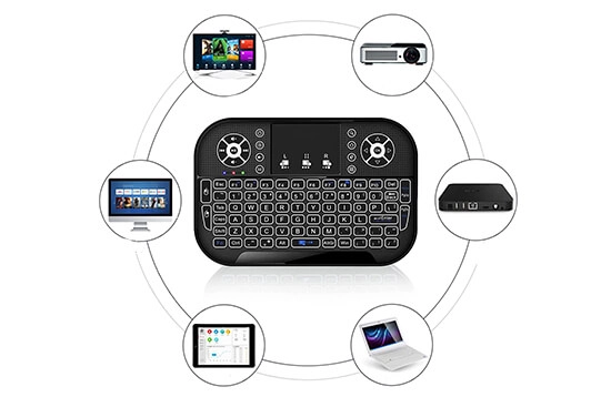 Mini klawiatura wykorzystuje połączenie bezprzewodowe dzięki dołączonemu adapterowi USB w częstotliwości 2.4Ghz oraz funkcji Bluetooth. Dzięki temu możemy obsłużyć takie urządzenia jak: