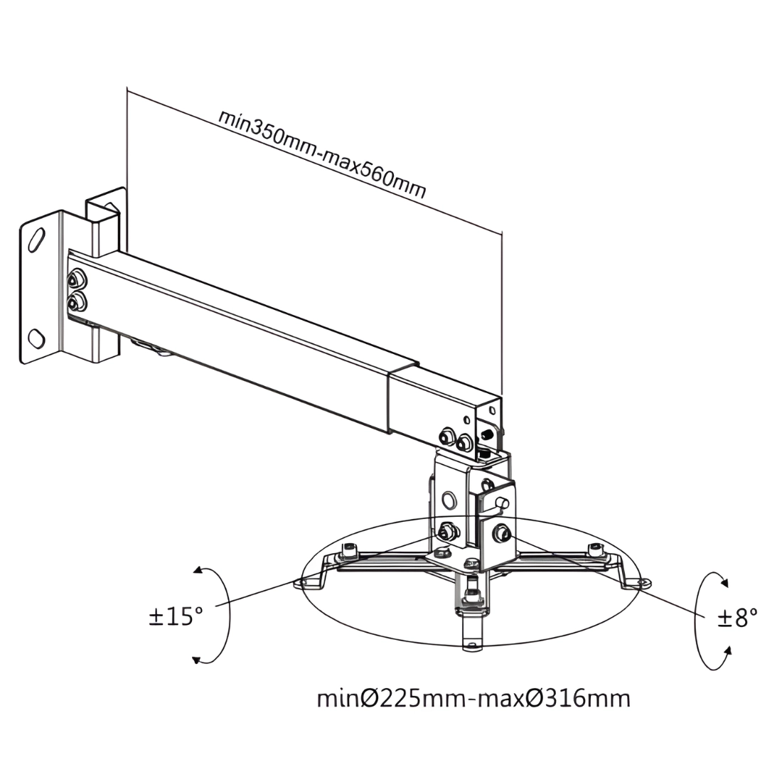 Model SPA-P01S umożliwia płynną regulację wysokości w zakresie 430–650 mm, co ułatwia dopasowanie położenia projektora do ekranu lub powierzchni projekcyjnej. Dodatkowo uchwyt oferuje regulowany pochył (+15°/-15°) oraz obrót (+8°/-8°), pozwalając precyzyjnie skorygować kąt wyświetlania obrazu. Dzięki temu zniwelujesz zniekształcenia perspektywy i zapewnisz widzom wygodny odbiór treści.
