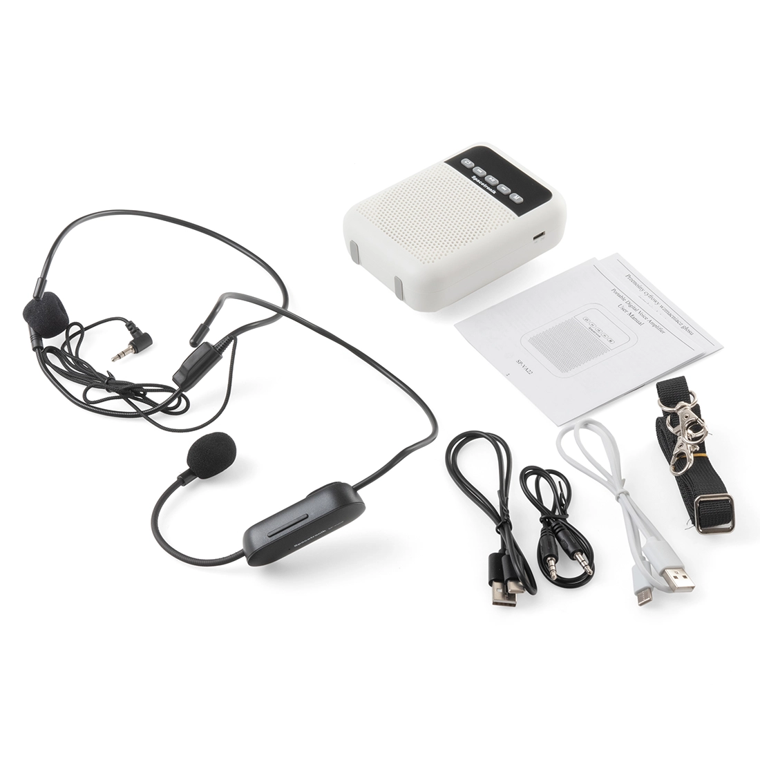 • Przenośny bezprzewodowy wzmacniacz głosu UHF z dwoma mikrofonami. Zapewnia nagłośnienie dla 25-100 ludzi. Wbudowana bateria, port USB, czytnik kart pamięci i wejście AUX, zasięg do 40m, idealny dla przewodników!