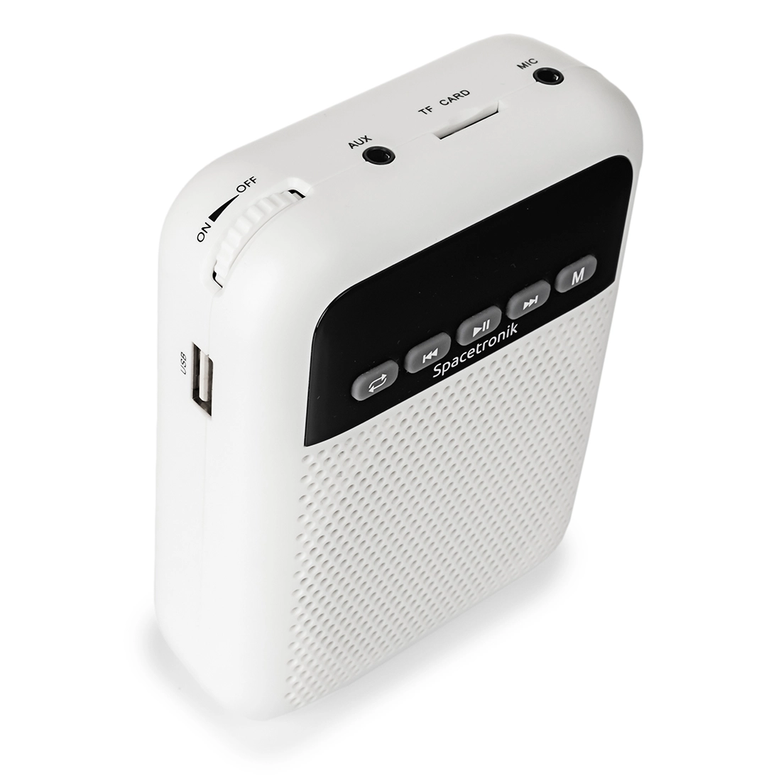 Niezależnie od tego, czy prowadzisz zajęcia w szkole, oprowadzasz wycieczki, przemawiasz na sali konferencyjnej czy prowadzisz trening – Spacetronik SP-VA22 to wzmacniacz głosu, który stanie się Twoim nieodzownym wsparciem. Ten poręczny, bezprzewodowy zestaw pozwala przemawiać bez wysiłku, zachowując pełną wyrazistość i siłę głosu. Dzięki wygodnym mikrofonom (zarówno bezprzewodowemu UHF, jak i przewodowemu) oraz dużej mobilności możesz zabrać go wszędzie tam, gdzie liczy się komunikacja. Wbudowana bateria pozwala na pracę nawet przez 38 godzin, a kompaktowa forma gwarantuje wygodę noszenia przez cały dzień. Spacetronik SP-VA22 to więcej niż tylko nagłośnienie – to partner, który zadba o Twój głos.