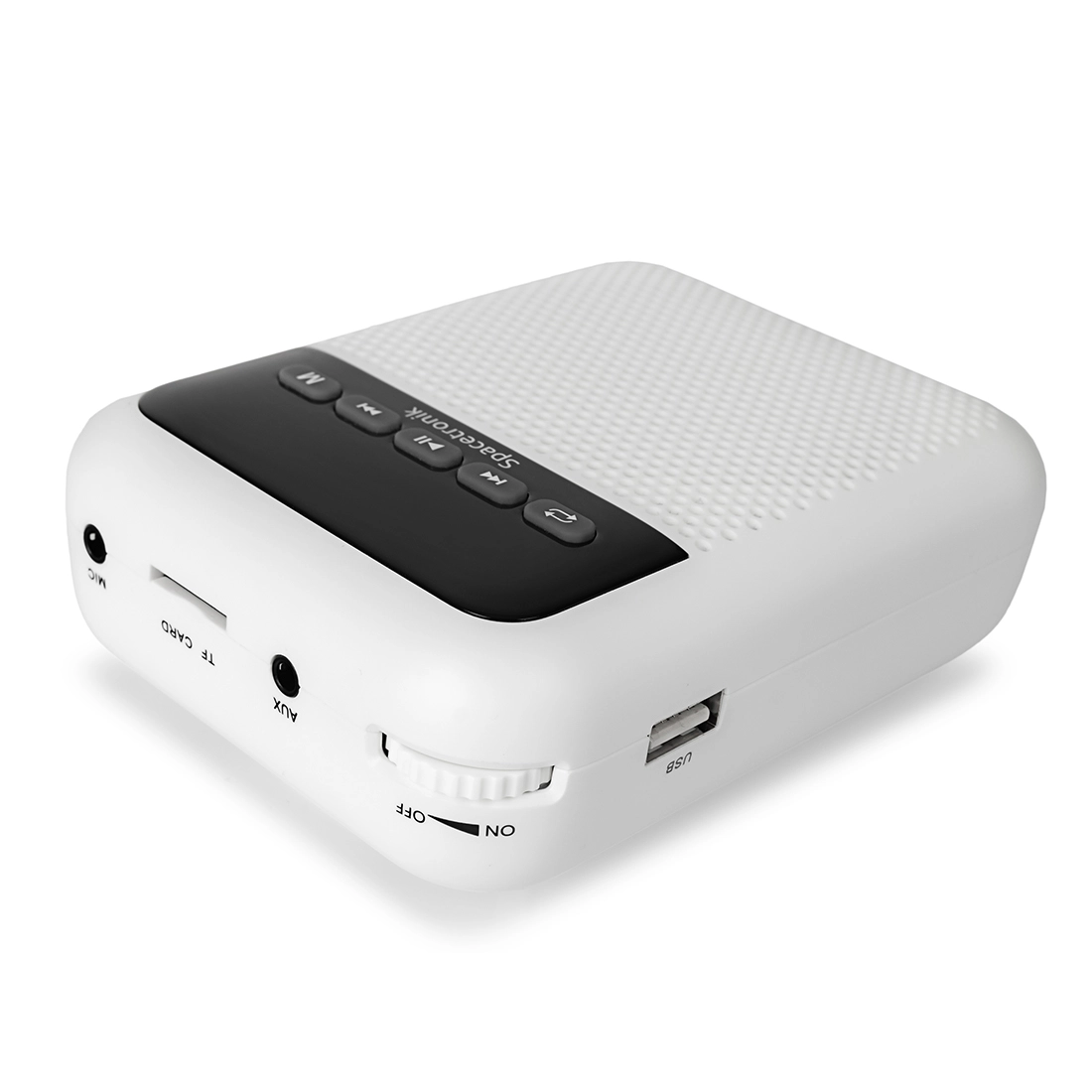 To nie tylko wzmacniacz głosu – SP-VA22 pozwala również odtwarzać muzykę z kart microSD, pendrive’ów czy innych urządzeń przez wejście AUX. Możesz zapętlić ulubiony utwór lub puścić całą playlistę. A gdy chcesz coś zachować na później, skorzystaj z funkcji nagrywania. Dzięki temu urządzenie staje się mobilnym dyktafonem, idealnym do rejestracji wykładów czy spotkań.