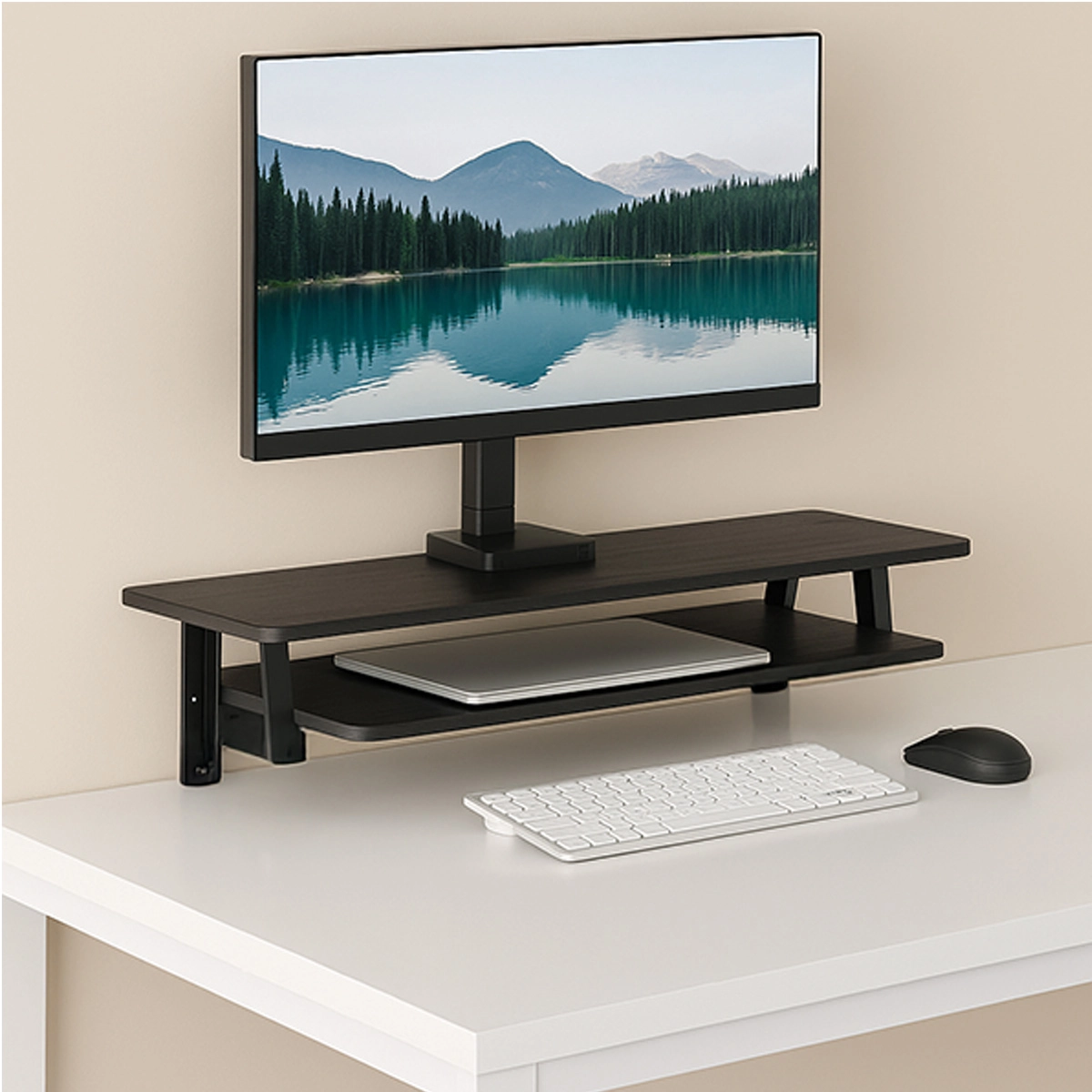 W celu umożliwienia Ci jak największego komfortu pracy półka Spacetronik HUGEL 15 zapewnia Ci aż dwa poziomy. Dzięki temu na pierwszym będziesz mógł trzymać np. monitor i laptopa, a na dolnej telefon, tablet, książki czy też notesy. Z łatwością będziesz w stanie przechowywać na niej wszystko to, co jest Ci potrzebne do komfortowej pracy.