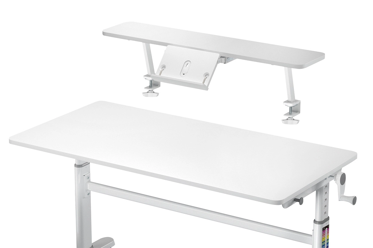 Zyskaj więcej przestrzeni na biurku, dokładając opcjonalną półkę do biurka SPB-113WW kompatybilną m.in. dziecięcymi biurkami regulowanymi elektrycznie Spacetronik XD.