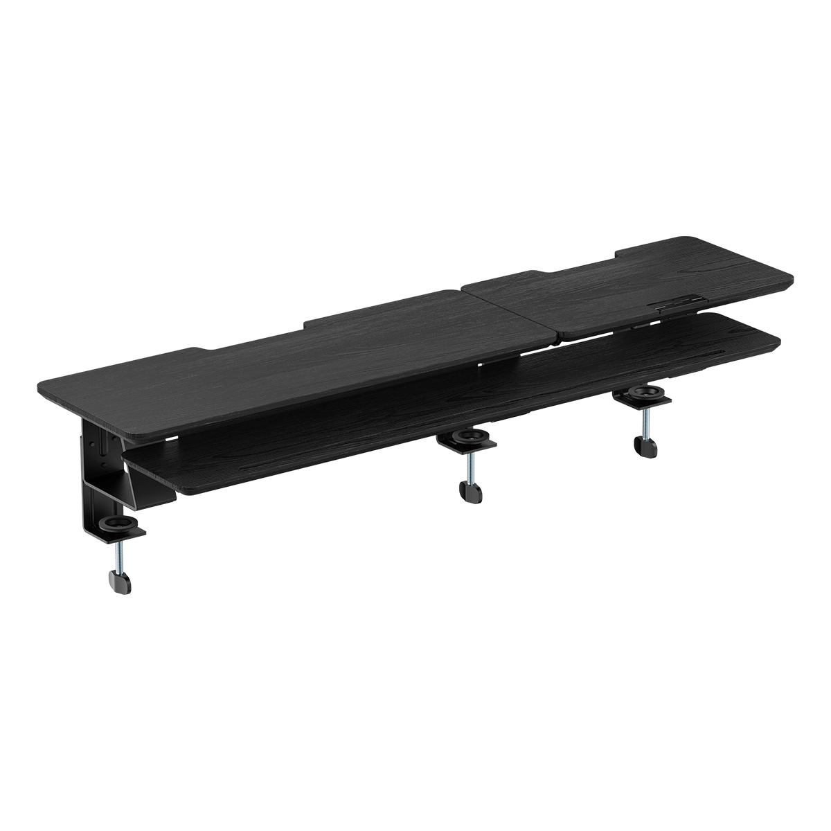 Półkę do biurka przymocujesz z łatwością za pomocą 3 zacisków. Takie rozwiązanie nie tylko zapewni Ci odpowiednią stabilność. Sprawi ono również, że półkę będziesz mógł szybko i bez problemu przenosić z jednego miejsca w drugie. Co ważne, nie pozostawiając po tym żadnych większych śladów użytkowania.