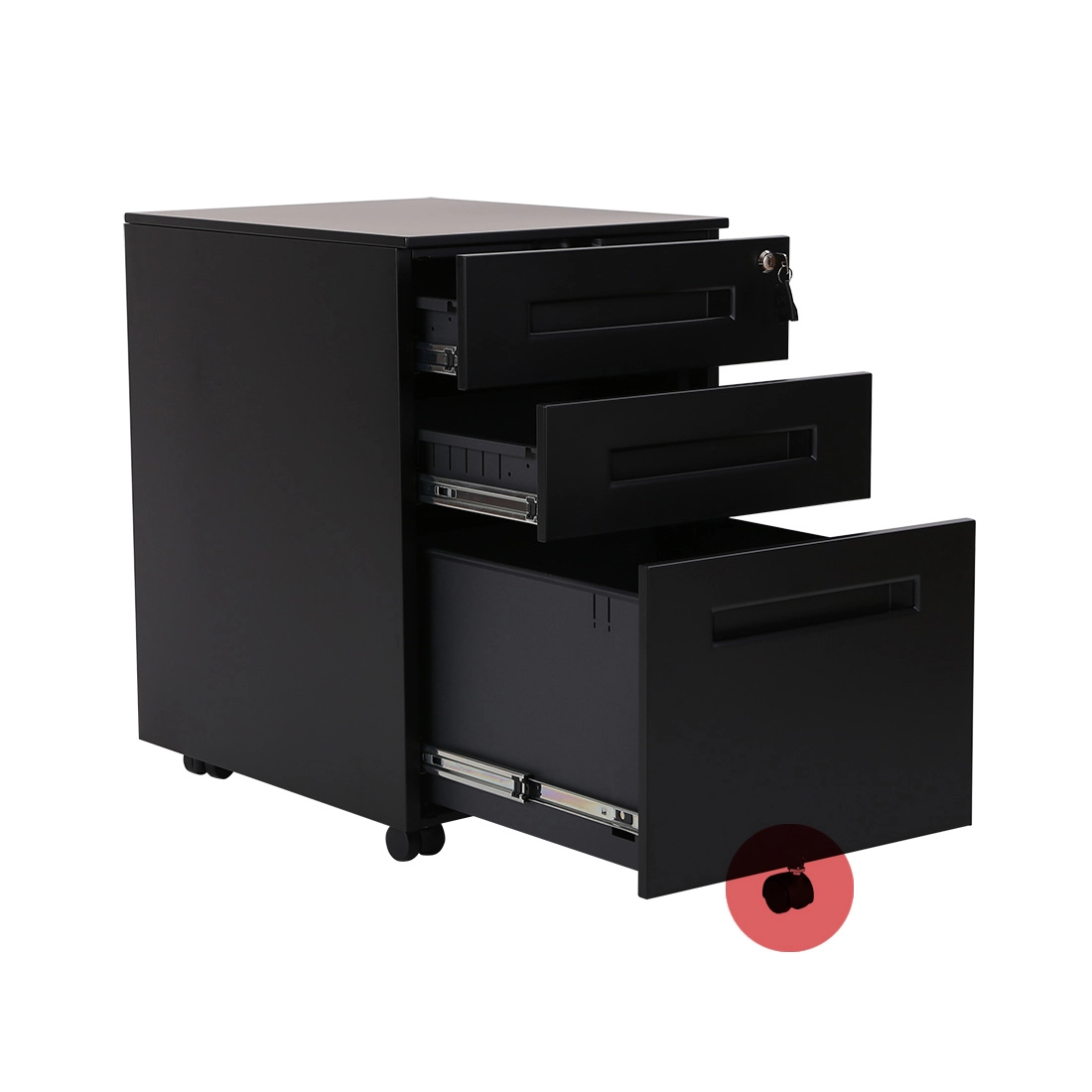Cała konstrukcja szafki 39 cm x 48 cm x 60 cm (szer./głęb./wys.) wykonana jest z wysokiej jakości stali o nośności do 120 kg. Wbudowany centralny zamek zabezpiecza zawartość wszystkich 3 szuflad jednocześnie. Twoje cenne dokumenty nie dostaną się w niepowołane ręce.