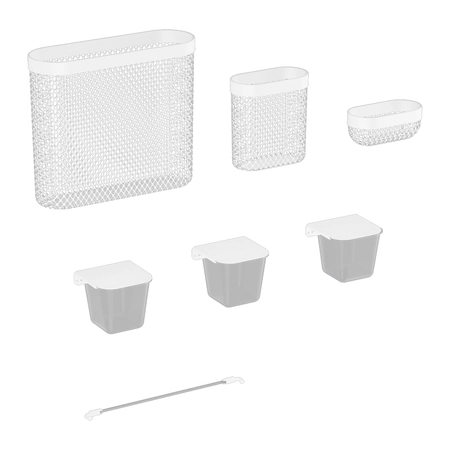 1x koszyk duży, 1x koszyk średni, 1x koszyk mały, 3x pojemnik, 1x elastyczny uchwyt