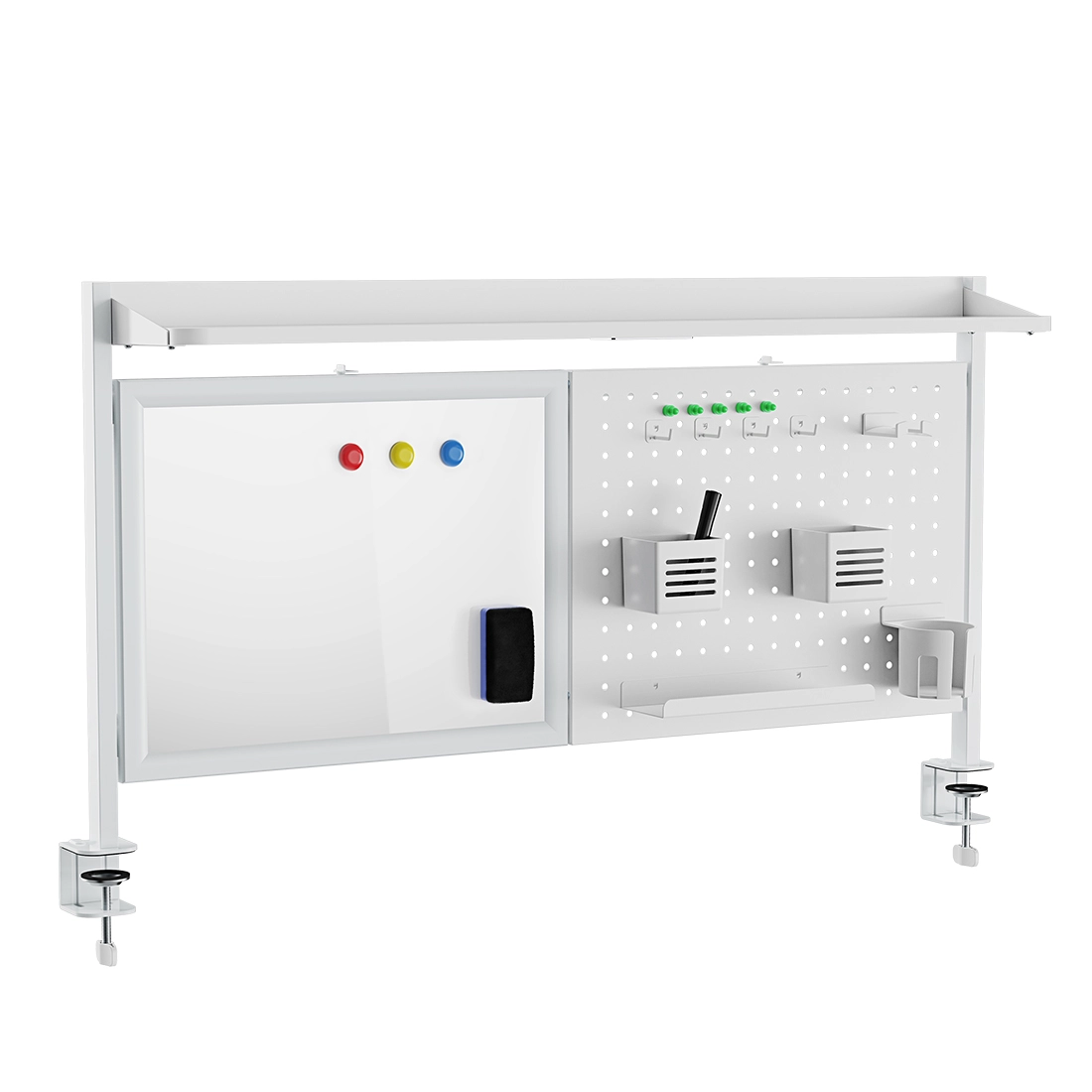 Wielofunkcyjna tablica perforowana Spacetronik Holdee SPB163W_120 to idealne rozwiązanie dla osób, które cenią porządek na biurku. Dzięki łatwemu montażowi na zaciski zyskujesz dodatkową przestrzeń do organizacji narzędzi i akcesoriów. Wbudowana tablica lub biała umożliwia szybkie notatki i planowanie. Solidna konstrukcja ze stali i płyty wiórowej zapewnia trwałość i stabilność na lata.