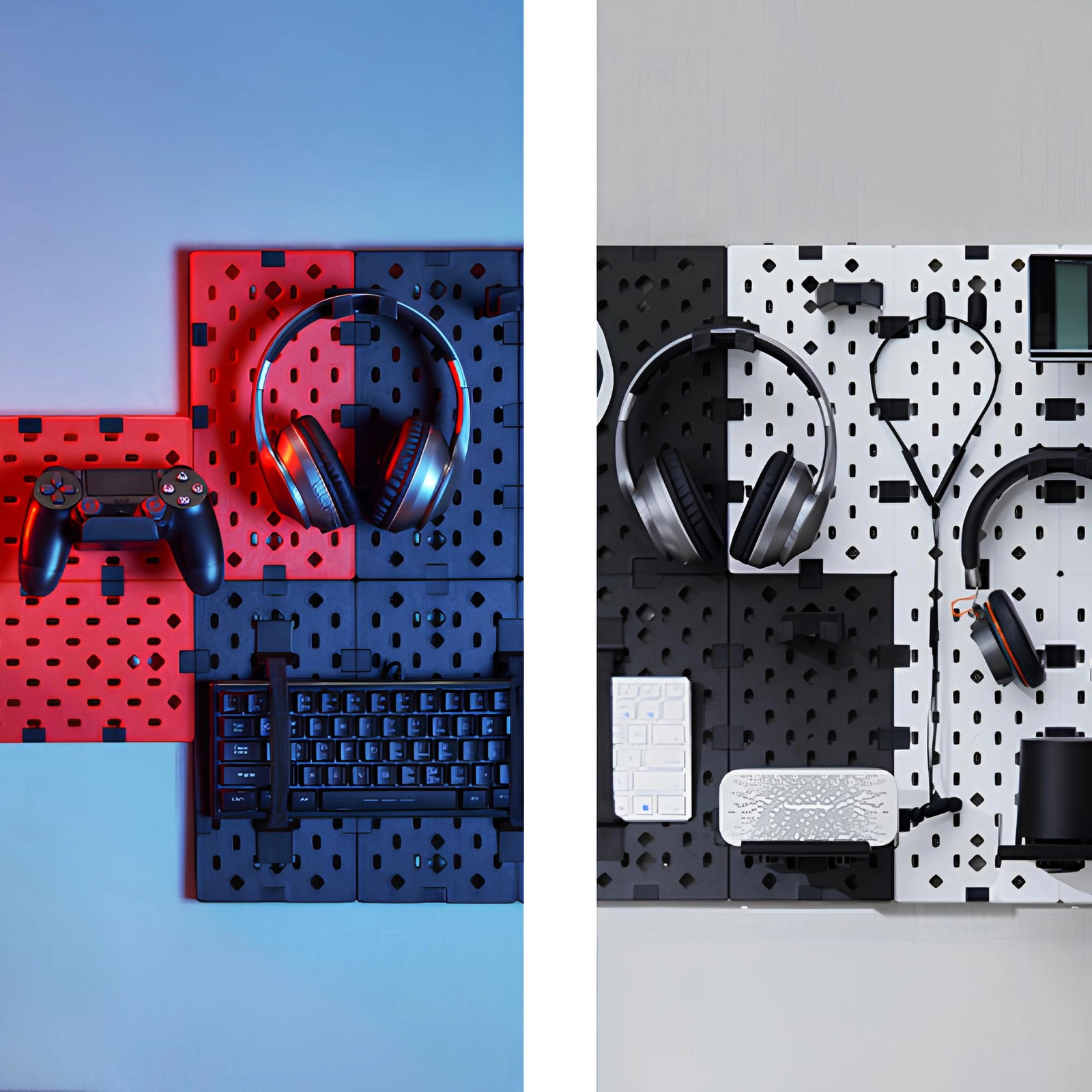 Jeżeli nie jesteś graczem i zastanawiasz się, czy taka tablica perforowana jest czymś dla Ciebie, to odpowiedź brzmi: jak najbardziej tak! Dzięki mnogości i uniwersalności dołączonych do zestawu uchwytów bez problemu umieścisz w nich inne przedmioty, niż akcesoria dla graczy. Klucze, książki, parasol i mnóstwo innych przedmiotów znajdą nowe miejsce. Dodatkowo dzięki modułowej budowie i 3 wariantom kolorystycznym dopasujesz tablice do swojej przestrzeni bez różnicy czy będzie to salon, kuchnia czy warsztat.