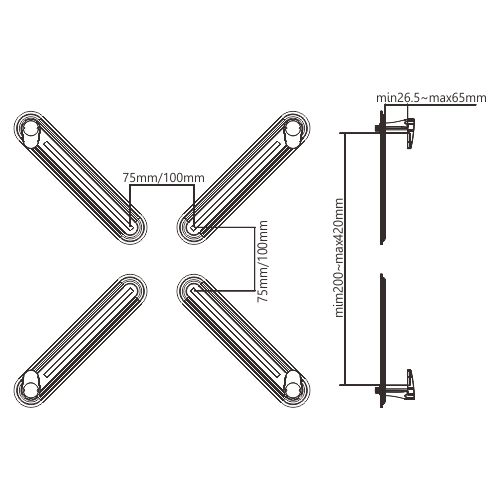 SPP-020 oferuje innowacyjne rozwiązanie do montażu monitorów bez standardu VESA. Adapter został zaprojektowany tak, aby pasował do każdego uchwytu monitora VESA z otworami montażowymi 75x75 i 100x100mm. SPP-020 wykorzystuje system czterech ramion, aby dostosować się do różnych wymiarów zewnętrznych monitorów płaskoekranowych.