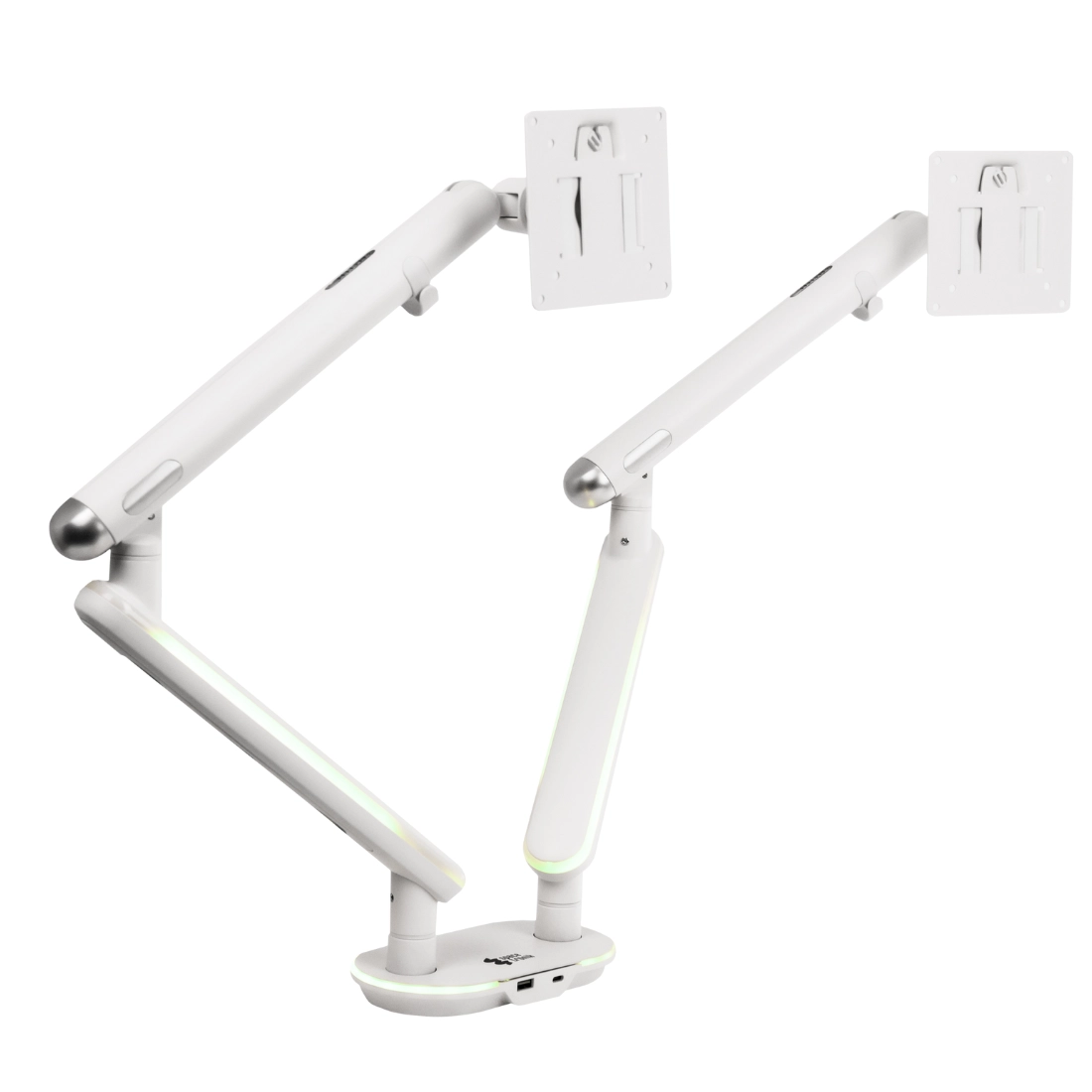Jeśli zależy Ci na pełnym zanurzeniu w rozgrywce, ramię SPAF120LUW zostało stworzone z myślą o Tobie. Podświetlenie RGB buduje klimat, dzięki któremu każda sesja staje się bardziej angażująca, a regulacja ramion pozwala ustawić ekrany tak, by zminimalizować odblaski i zachować idealny kąt widzenia. Aluminiowa konstrukcja utrzymuje stabilność nawet podczas dynamicznych ruchów, a hub USB sprawia, że słuchawki, pad czy dysk masz zawsze pod ręką. Tworzysz swoje stanowisko tak, jak lubisz – bez kabli, bez chaosu, bez kompromisów.